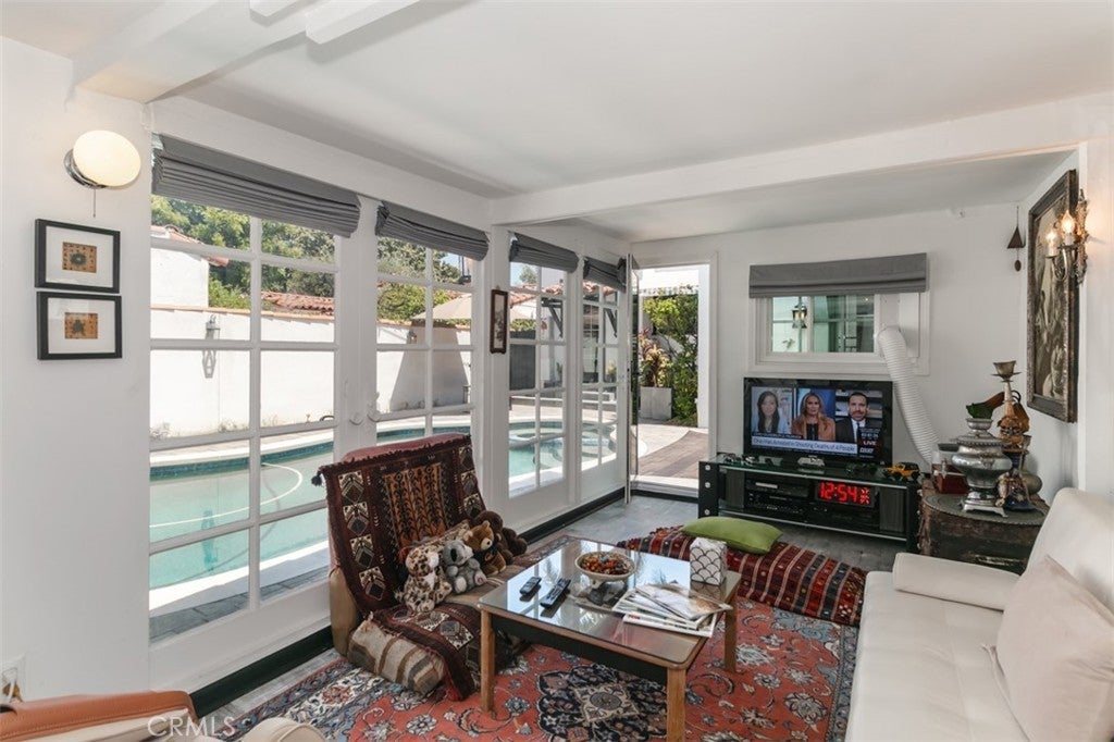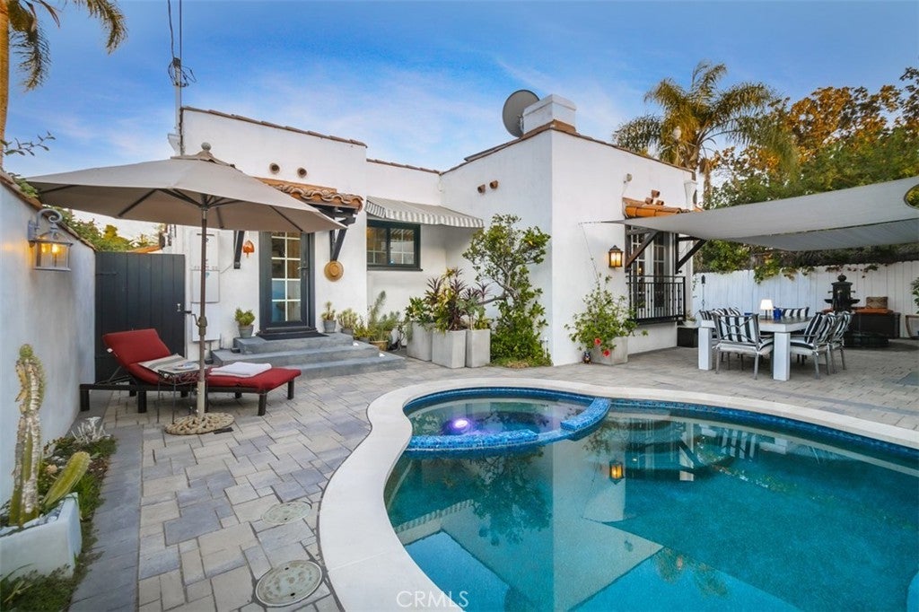 Welcome to this gated, charming, magical Spanish-style single-story oasis located in a desirable pocket of Studio City/Toluca Lake/NoHo. You'll be captivated by the home's character from the moment you arrive. The lovely porch with sweeping, colorful bougainvillea and a striking front door invites you into this gorgeously well-maintained home. The main house offers 2 bedrooms and 2 luxurious bathrooms, one with a jetted soaking tub. The formal living room has high ceilings and a focal decorative fireplace. The dining room has an adorable side nook for your morning coffee or afternoon reading. The updated kitchen is bright and cheerful, with marble counters, newer appliances, storage and a wine fridge. The spacious den has a fireplace and a large flat-screen TV for relaxing. Laundry room provides a stackable washer & dryer, a sink and direct access to the backyard. This property is perfect for outdoor living. The backyard feels like your own resort equipped with a sparkling saltwater pool, spa & light features, a large shaded dining area, and a BBQ with a built-in gas line. Plus detached from the main house is a light-filled rec room that can be used as an office or cabana plus there's a 3/4 bath + a massage room + a sauna + a gym. This home is truly a special place with decorative sconces, painted tiles, and unique light fixtures. Amazing location- close to parks, shopping, dining, the freeways, the Universal metro station, entertainment studios, Burbank, Toluca Lake and much more! Great amenities include pool service, internet, solar panels, a water softener, and filtration. Home is a little more than partially furnished.