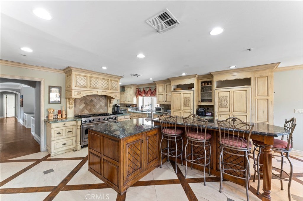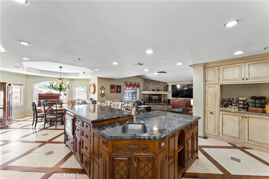 Breakfast Bar, Built-in Features, Breakfast Area, Chair Rail, Ceiling Fan(s), Crown Molding, Dry Bar, Separate/Formal Dining Room, Eat-in Kitchen, Granite Counters, Open Floorplan, Pantry, Recessed Lighting, Storage, All Bedrooms Down, Bedroom on Main Level, Attic, Coffered Ceiling(s), In-Law Floorplan, Partially Furnished, Pull Down Attic Stairs