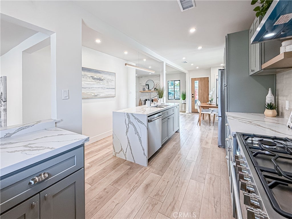 Completely remodeled rental, available for IMMEDIATE OCCUPANCY! Amenities include: single-story, open floorplan; 3BR + 2BA; over 1800 SQF; living room w/fireplace; dining area; upgraded kitchen w/center island, granite countertops countertops + stainless steel appliances (refrigerator, stove/oven + dishwasher included); family room w/separate entrance to backyard; primary suite w/full bath featuring double sinks; wood laminate flooring throughout; central HVAC; recessed lighting + dual pane windows; inside laundry w/stacked washer + dryer hook-ups; backyard w/pool + covered patio; citrus tree; gardener + pool service provided; driveway for parking; small pets considered w/owners approval.