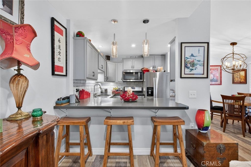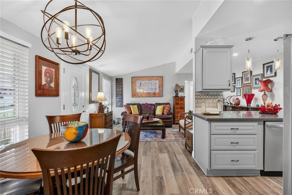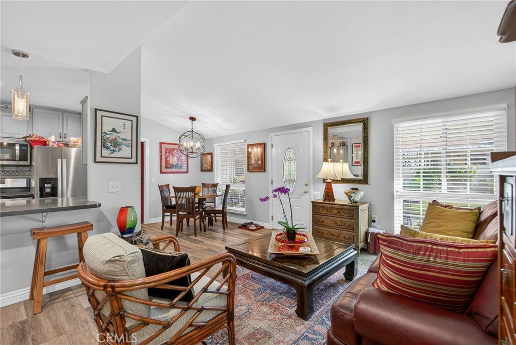 Welcome to your serene retreat in the desirable, guard-gated 55+ community of Friendly Valley. This beautifully updated end-unit home offers 2 bedrooms and 2 full bathrooms with a light-filled, open feel highlighted by vaulted ceilings and upgraded laminate flooring throughout. The remodeled kitchen features stunning quartz countertops, soft-close cabinetry, and a clean, modern design ideal for everyday living and entertaining. Both bathrooms have been tastefully remodeled, including a walk-in shower for added comfort and convenience. Laundry is conveniently located inside the unit, and the home is truly move-in ready. Friendly Valley is a vibrant, amenity-rich community offering an exceptional lifestyle. Enjoy access to an 18-hole pitch & putt golf course, swimming pool and spa, clubhouse, auditorium, library, fitness center, game room, woodworking shop, ceramics studio, poker room, shuffleboard courts, horseshoe and basketball courts, lawn bowling, picnic areas, and BBQ facilities. HOA dues include water, trash, hot water, sewer, roof and building maintenance, landscaping, basic cable, insurance, and 24/7 gated security—providing peace of mind and low-maintenance living. Ideally located near Costco, CVS, Starbucks, Stater Bros, shopping, dining, and convenient freeway access. A wonderful opportunity to enjoy comfort, convenience, and community at Friendly Valley.