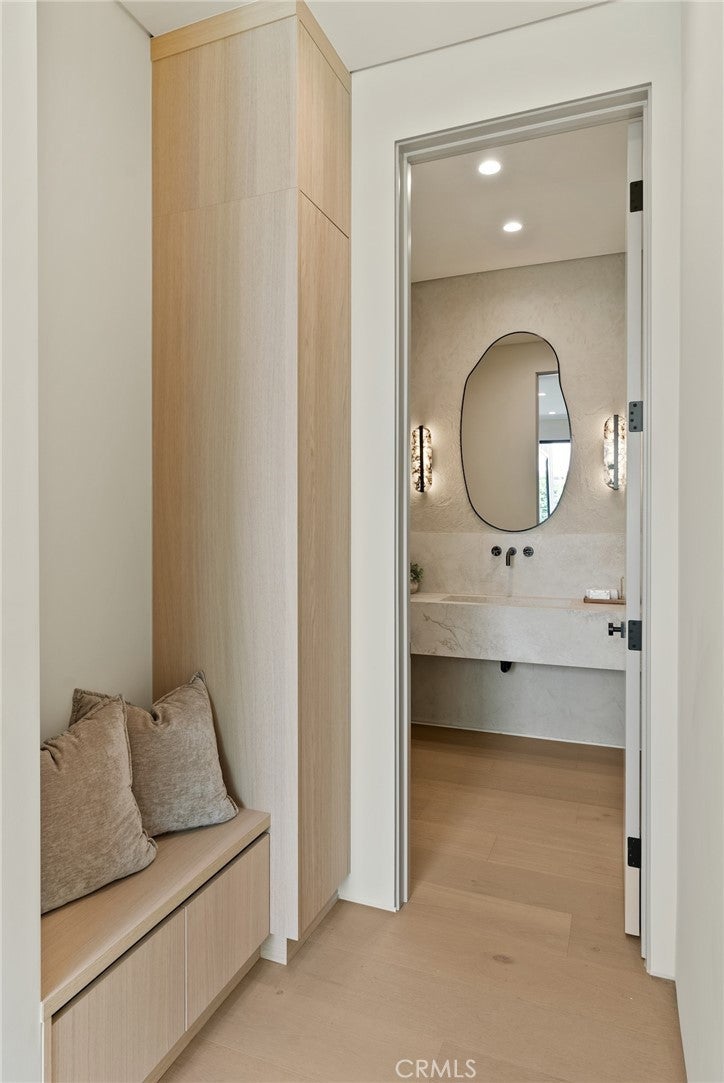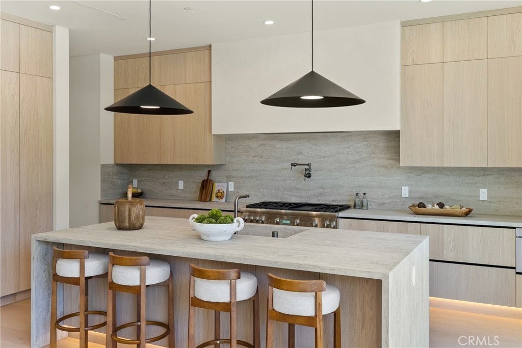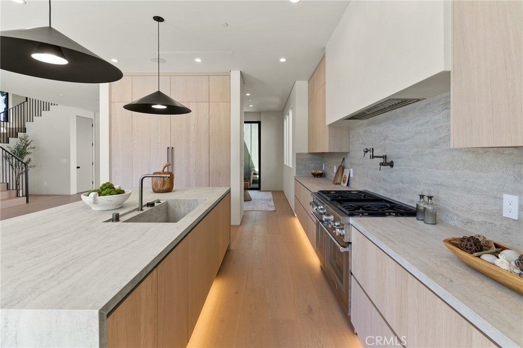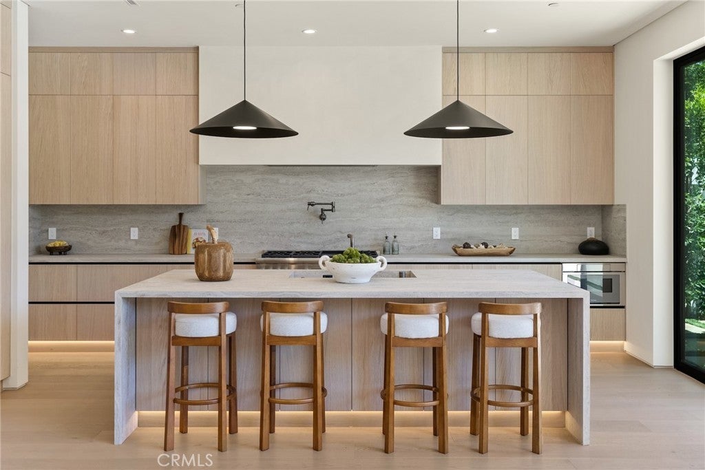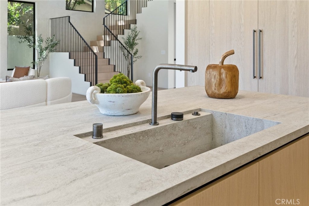 Welcome to this exceptional newly built 2025 gated estate, crafted by one of Sherman Oaks’ most acclaimed builders and designers, renowned for their visionary architecture, superior craftsmanship, and sophisticated blend of high-end materials.Situated on a serene street lined with luxury homes, just moments from Ventura Boulevard, this stunning residence sets a new standard for luxury living. Designed with both comfort and elegance in mind, the main house features 5 beds & 5.5 bathrooms, including a detached guest house. The open-concept floor plan is ideal for modern living, featuring wide-plank golden oak flooring, warm Venetian plaster walls, & expansive floor-to-ceiling windows flood the space with natural light. A dramatic family room with a sleek custom fireplace, & oversized pocket sliding doors that open to the backyard oasis. The designer chef’s kitchen is a true centerpiece, featuring custom cabinetry, high-end appliances, porcelain countertops, and a statement island with integrated stone sink & premium fixtures, blending functionality with artistry.The formal dining room is elevated by a statement wall & a designed wall wine holder adds a bold touch of sophistication and convenience for entertainers. The first-floor ensuite is perfectly positioned for use as a home office, wellness or guest room. A dramatic powder room with a floating stone sink adds a bold design element. Upstairs, soaring ceilings frame three generously sized ensuite bedrooms, shared front balcony and all with access to an oversized patio. The primary suite is a luxurious retreat, with a stunning fireplace, a designer wall finished in custom textured Venetian plaster infused with relaxing Tulum-inspired vibes, custom built-ins, a walk-in closet, and a private balcony. The spa-like bathroom boasts a soaking tub, dual rainfall showers & vanities. Step outside to a resort-style backyard with lush landscaping, a sparkling pool & spa, outdoor kitchen with b.b.q, a detached enclosed cabana equipped with a full bathroom & a kitchenette designed for guests, an office/pool house and effortless entertaining & relaxation. The Crestron smart home is equipped with built-in speakers, security cameras, and ambient LED lighting throughout. Located in a highly sought-after Sherman Oaks neighborhood, easy access to the area's best shops, dining, Kester magnet school and the 101 & 405 freeways. Own this rare opportunity, a one-of-a-kind 2025home that perfectly embodies both luxury & lifestyle.