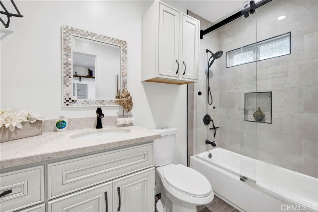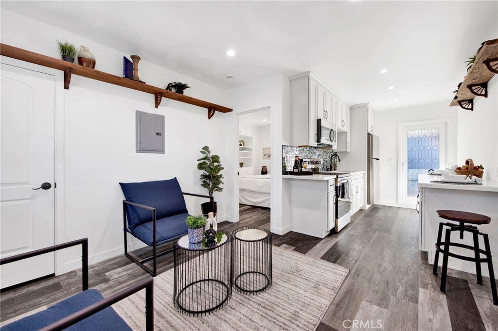 Exceptional two-unit property in North Hollywood. Built in 1980, this meticulously updated turn-key home offers paid-off solar panels and a private ADU. Main home is 3 beds, 2 baths (~1,400 SF) and the ADU is 1-bed, 1-bath ADU (~450 SF). Both units have rich laminate flooring, dual-paned windows, recessed lighting, fresh paint, its own washer/dryer's and high-end kitchens and baths. Curb appeal shines with smooth stucco, paver stone hardscape, lush landscaping, exterior lighting with outlets, rain gutters with barrels, clean-outs, drain grates and a drip irrigation system for easy maintenance. Inside, the vaulted living room is bathed in natural light and anchored by a mosaic stone fireplace offering gas and wood-burning functionality, finished with a stone mantel. The chef’s kitchen is thoughtfully designed with ceiling-height cabinetry, soft-close drawers, Frigidaire appliances, quartz counters, glass backsplash, double-bowl sink, and generous cabinet and counter space. Nearby closet houses a washer/dryer and may also function as a walk-in pantry. Dining area is ideally positioned between the living room and kitchen, creating an effortless flow for everyday living. All bedrooms feature ceiling fans. The primary suite includes a large walk-in closet, ensuite bath with marble-look counters and a frameless glass shower with dual niches. The hallway’s bath offers plenty of storage, and a tub/shower combo with glass sliding doors. The ADU includes a private entrance, walk-in-closet, in-unit washer/dryer, mini-split AC, and a sleek kitchen with LG appliances, quartz counters, backsplash, soft-close cabinets, and extended counters. ADU bath is complete with a with tub/shower combo, glass slider, niche, dual shower heads, and a distinctive frosted privacy door. The backyard is designed for entertaining, featuring concrete pavers that create a cohesive extension of the front yard design. The outdoor space features a covered patio, elevated lounge seating, and a garden with a trellis arbor, lemon, grapefruit, apple, cherry, and peach trees, complemented by roses, cacti, and artistic animal-themed wall art. Delivering income potential, modern upgrades, and quick in-and-out freeway access to and from the Valley, with rear positioning benefiting from adjacent infrastructure that provides separation from surrounding development. A nearby park just up the street! A rare opportunity blending lifestyle, design, and investment value—every inch was thoughtfully considered.