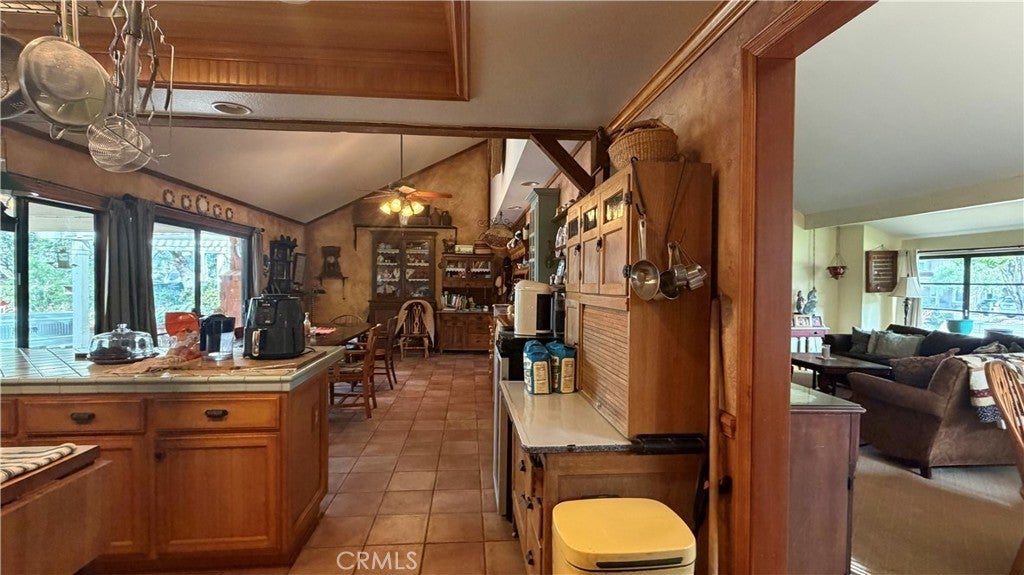 Ceiling Fan(s), Country Kitchen, Storage, Tile Counters, All Bedrooms Down, Attic, Bedroom on Main Level, Main Level Primary, Utility Room, Walk-In Closet(s)