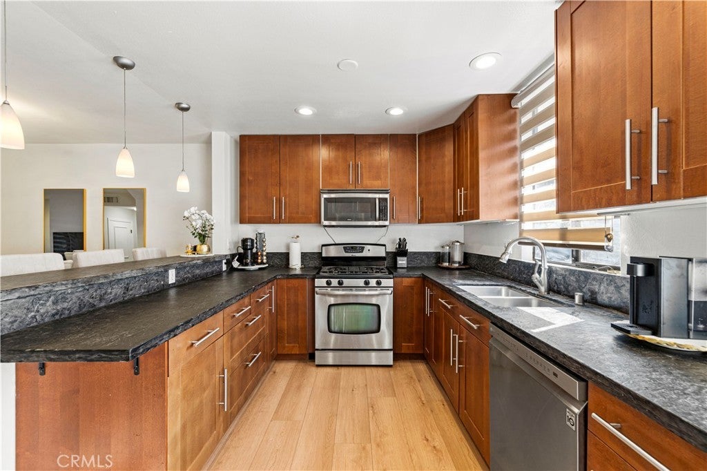 This French inspired townhome-style condo in Playa Del Rey offers direct access to side by side parking, EV charging, central AC & heating plus 2 outdoor living spaces. The upstairs bedrooms offer new plush luxury carpet & ensuite baths & walk-in closets. The downstairs boasts new vinyl floors throughout. With an abundance of natural light filling the entire living space, the main level offers a proper dining area and open concept kitchen with direct access to a balcony ideal for grilling. Step down to the formal living room with a decorative fireplace & high ceilings which lead to a spacious private patio perfect for entertaining. The kitchen boasts natural wood shaker cabinets, & stone countertops, stainless steel appliances, plus a wine fridge & dry bar. Benefit from the convenience of a half bath downstairs. This unit is a fantastic single family home alternative. A massive bonus area is located just off the garage entrance and this room could be used for a 3rd bedroom, bonus, office, workout room, play area and has the full size washer/dryer. The community garage provides direct access to this unit & comes with an additional storage space. Less than 1 mile from the beach! Enjoy the eateries, coffee shops & boutiques. HOA includes earthquake insurance, water, trash, insurance, and maintenance/gardening.