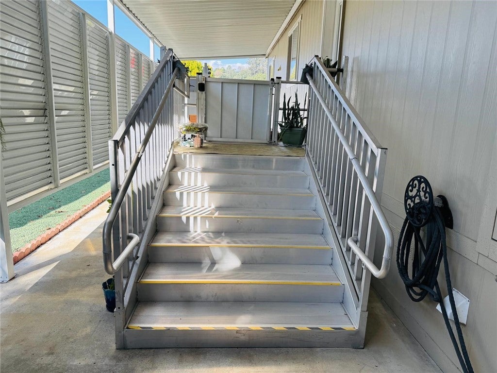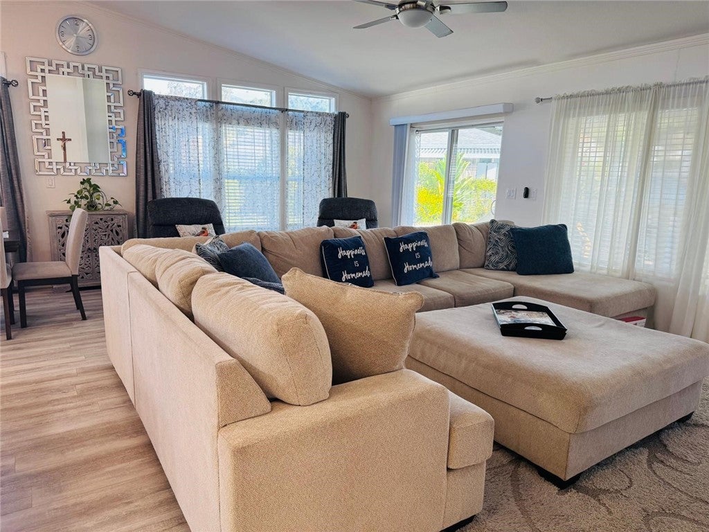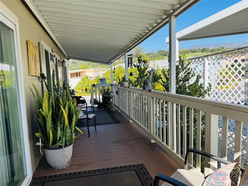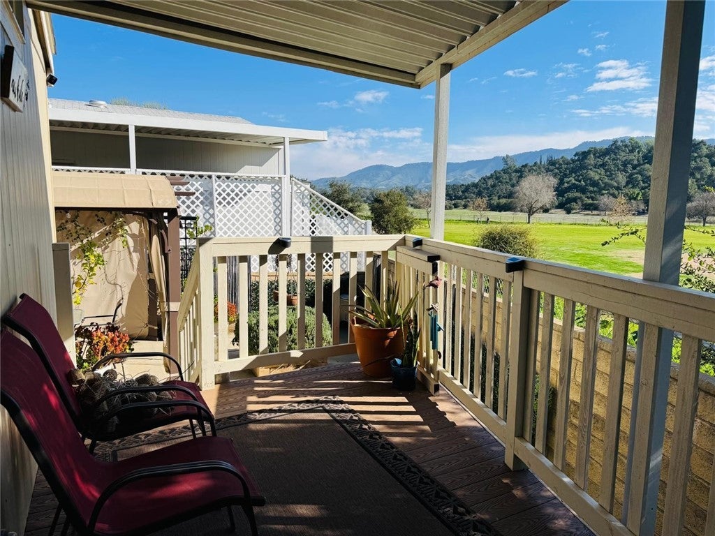 Welcome to Mira Valle Mobile Home Community, a peaceful, private, and highly sought-after 55+ community nestled in the heart of picturesque Ojai. This serene, culturally rich enclave celebrates artistic value with its welcoming atmosphere, beautiful mountain surroundings, & proximity to Ojai's renowned creative scene—perfect for those who appreciate a relaxed, inspiring lifestyle. This gorgeous contemporary home features wrap-around front windows and a large deck, perfectly positioned to capture breathtaking mountain views and the valley's natural beauty. Inside, the spacious open-concept floor plan is bathed in natural light, highlighted by cathedral ceilings with crown molding, clerestory double-pane windows, and skylight solar tubes that enhance the bright, airy feel. The well-appointed kitchen is both functional and stylish, boasting Corian countertops, stainless steel appliances, a double gas oven range, dishwasher, double-door refrigerator, and garbage disposal. Year-round comfort is assured with central air conditioning and heating, plus cordless ceiling fans in every room. The large primary bedroom includes a private rear entrance opening to a spacious back deck—ideal for quiet relaxation or entertaining while overlooking stunning mountain vistas. A dedicated laundry room with washer & dryer adds everyday convenience. Additional highlights include a handicap-accessible automatic aluminum side lift with an attached aluminum deck and stairs, an easy-access carport accommodating two vehicles (or an SUV), guest parking conveniently located directly in front, a storage shed, extensive under-home storage, and a backyard pergola perfect for outdoor enjoyment. Residents of Mira Valle enjoy exceptional community amenities, including a clubhouse, heated pool, spa, large indoor jacuzzi, game room, and RV storage—all fostering a vibrant yet tranquil senior living experience. Ideally situated, the community is just minutes from Ojai's hiking trails, bike paths, downtown shops, restaurants, and the Ojai trolley stop. Lake Casitas (about 8-10 miles away) offers endless outdoor adventures: camping, picnicking, hiking, boating, fishing & even a fun water park with a lazy river. Plus, you're just 12 miles from the Pacific Ocean for easy beach getaways. This home combines modern comfort, thoughtful accessibility & the best of Ojai's peaceful, artistic, & nature-filled lifestyle—truly the ideal spot for active lifestyle in one of CA's most enchanting valleys.