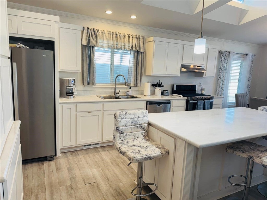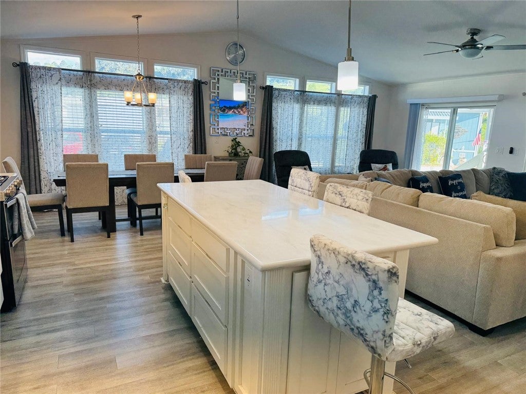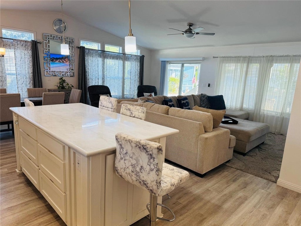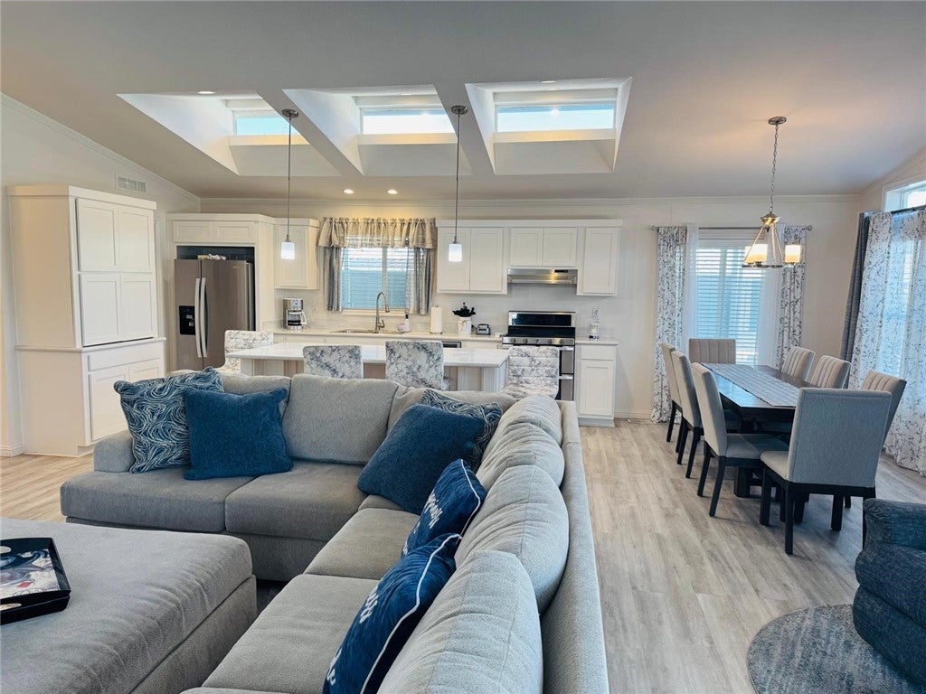 Welcome to Mira Valle Mobile Home Community, a peaceful, private, and highly sought-after 55+ community nestled in the heart of picturesque Ojai. This serene, culturally rich enclave celebrates artistic value with its welcoming atmosphere, beautiful mountain surroundings, & proximity to Ojai's renowned creative scene—perfect for those who appreciate a relaxed, inspiring lifestyle. This gorgeous contemporary home features wrap-around front windows and a large deck, perfectly positioned to capture breathtaking mountain views and the valley's natural beauty. Inside, the spacious open-concept floor plan is bathed in natural light, highlighted by cathedral ceilings with crown molding, clerestory double-pane windows, and skylight solar tubes that enhance the bright, airy feel. The well-appointed kitchen is both functional and stylish, boasting Corian countertops, stainless steel appliances, a double gas oven range, dishwasher, double-door refrigerator, and garbage disposal. Year-round comfort is assured with central air conditioning and heating, plus cordless ceiling fans in every room. The large primary bedroom includes a private rear entrance opening to a spacious back deck—ideal for quiet relaxation or entertaining while overlooking stunning mountain vistas. A dedicated laundry room with washer & dryer adds everyday convenience. Additional highlights include a handicap-accessible automatic aluminum side lift with an attached aluminum deck and stairs, an easy-access carport accommodating two vehicles (or an SUV), guest parking conveniently located directly in front, a storage shed, extensive under-home storage, and a backyard pergola perfect for outdoor enjoyment. Residents of Mira Valle enjoy exceptional community amenities, including a clubhouse, heated pool, spa, large indoor jacuzzi, game room, and RV storage—all fostering a vibrant yet tranquil senior living experience. Ideally situated, the community is just minutes from Ojai's hiking trails, bike paths, downtown shops, restaurants, and the Ojai trolley stop. Lake Casitas (about 8-10 miles away) offers endless outdoor adventures: camping, picnicking, hiking, boating, fishing & even a fun water park with a lazy river. Plus, you're just 12 miles from the Pacific Ocean for easy beach getaways. This home combines modern comfort, thoughtful accessibility & the best of Ojai's peaceful, artistic, & nature-filled lifestyle—truly the ideal spot for active lifestyle in one of CA's most enchanting valleys.