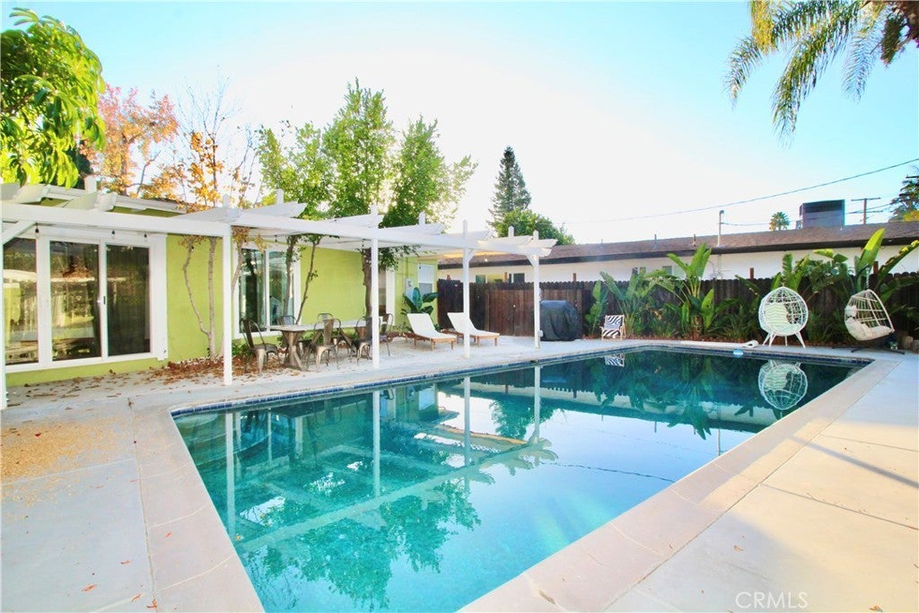 Nestled within the Walnut Acres neighborhood in the heart of Woodland Hills, this meticulously maintained 5-bed, 3-bath home boasts a refreshing pool and a separate guesthouse with one bed, one bath, and its own kitchen. Upon entering, the main house welcomes you with meticulous attention to detail, abundant natural light, and a galley kitchen adjacent to a cozy breakfast nook. The rear of the home unveils four spacious bedrooms with ample closet space, of which offer direct access to the pristine pool area. The primary bedroom features a dedicated space and an en suite bathroom. Step into the backyard to discover the sparkling pool surrounded by various outdoor seating areas. The generous guesthouse is complete with one bed, one bath, and a separate kitchen area. Conveniently situated, this home is in close proximity to shops, restaurants, Ventura Boulevard, and the 101 freeway. Available for both long-term and short-term leases, it can be rented fully furnished or unfurnished for extended stays. Price advertised is for one year lease. Shot term rental rate to be negotiated.