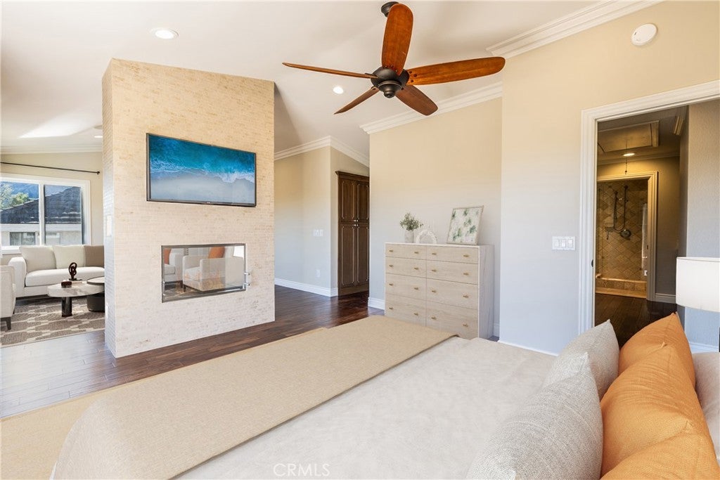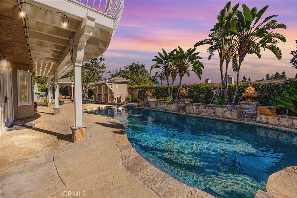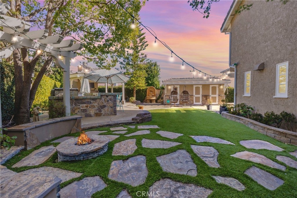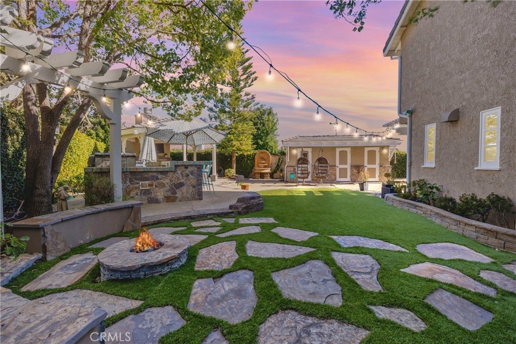 Welcome to 29665 Meadowmist in Agoura Hills, privately positioned at the end of a quiet cul-de-sac and anchored by a truly show-stopping, resort-style backyard that sets this property apart. The stunning outdoor oasis features a sparkling pool and spa with dramatic fire bowls and waterfall features, plus a private sauna, bathroom, and changing room so pool days stay outside. A fully equipped outdoor kitchen, fire pit with seating, a dedicated outdoor sitting area with fireplace, and multiple lounge areas create an exceptional space for entertaining or relaxing year-round. Inside, the home is filled with natural light throughout. The upgraded chef’s kitchen is equipped with high-end appliances from Dacor and Thermador to a GE Monogram oven, ideal for both everyday living and hosting. The spacious primary suite offers a dual-sided fireplace and a striking picture window that frames beautiful views to wake up to each morning. A private balcony provides an additional vantage point to enjoy the scenery. The upgraded primary bath includes heated floors, a heated towel rack, a rain shower head, and an air-jet soaking tub. A separate staircase leads to a private 500 (approx.) square foot bonus room with an en-suite bathroom, offering flexibility as a guest suite, home office, media room, or private retreat. Additional upgrades include a newer AC unit, upgraded dual-pane windows, a Rachio smart irrigation system, and so much more. 29665 Meadowmist delivers privacy, luxury, and an unparalleled outdoor experience in one exceptional Agoura Hills home.