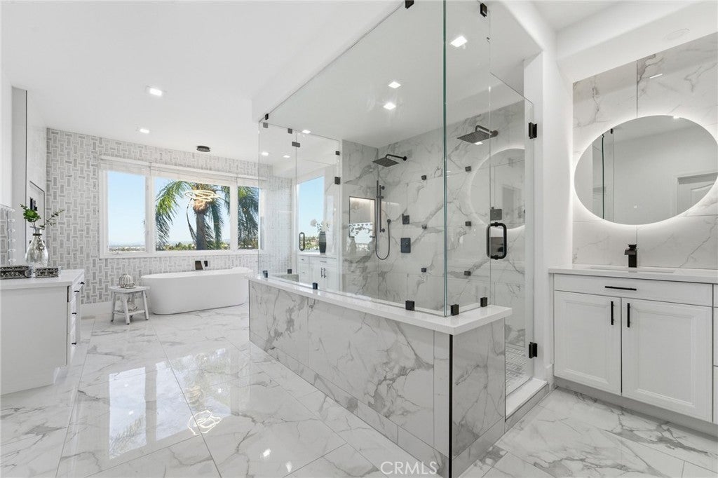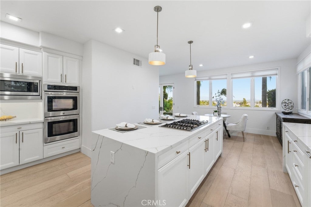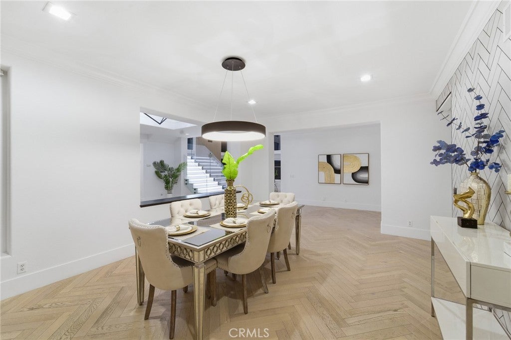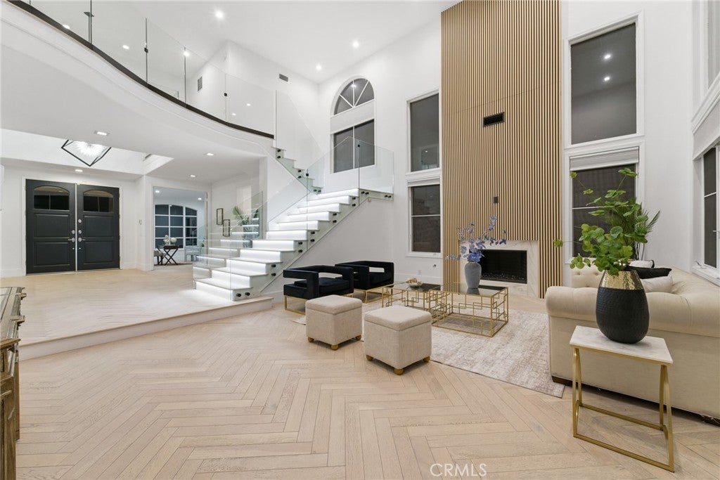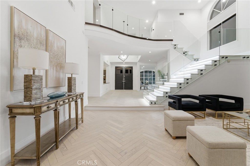 Newly remodeled! This exquisite 7612 Carmenita Lane in West Hills, CA 91304, a luxurious estate nestled in the prestigious Stonegate. This panoramic view property is ideally situated on a prime cul-de-sac street, offering unparalleled elegance and comfort. As you step inside, you're greeted by sophisticated white oak wood floors throughout, featuring a stunning herringbone pattern at the entryway and living room. The modern glass stair railings and LED lights under the stairs create a warm and inviting ambiance. The home boasts a spacious and convenient layout, with high volume ceilings and light-filled rooms, including two staircases, five XL bedroom suites each with its own bathroom, a den/office with a fireplace, and a large bonus room on the second level. Elegant upgrades enhance the beauty of the interior, including recessed LED lighting throughout, four upgraded fireplaces with a double-sided fireplace in the lavish master suite, and a newly added media room for entertainment. The master suite is a true retreat, offering breathtaking views, a sumptuous bathroom, a large closet, and a view balcony. The family room features a wet bar with a large granite counter, perfect for hosting gatherings. The spacious kitchen with ample cabinet storage and a large dining area, along with a formal dining room, cater to all your culinary needs. Outside, the low-maintenance yard boasts upgraded pool and spa equipment and upgraded landscaping – all overlooking the amazing panoramic view. Ideally located close to parks, temples, highly desirable schools, and shopping, this estate offers both privacy and convenience. Experience the pinnacle of elegance and comfort at 7612 Carmenita Lane, where every detail has been carefully considered to create a truly magnificent home.