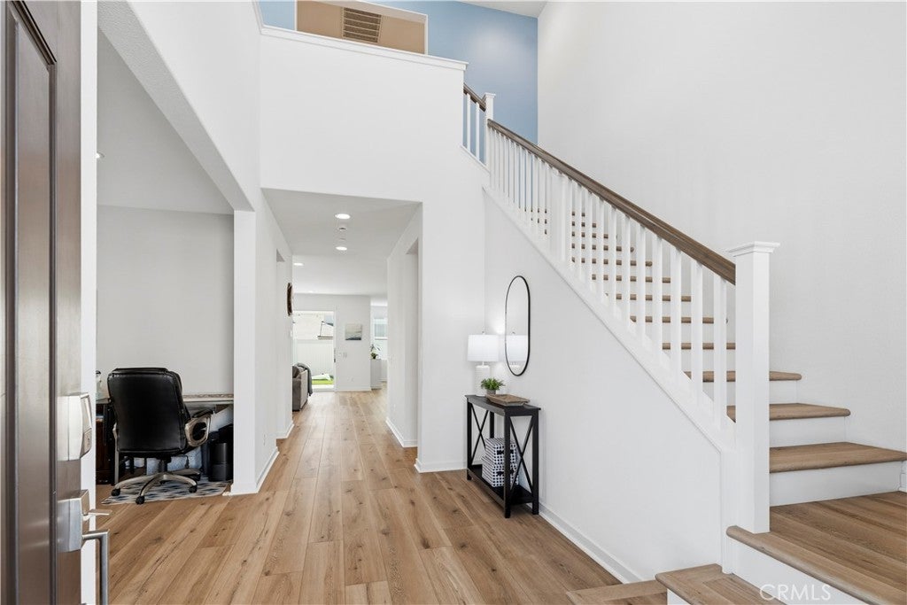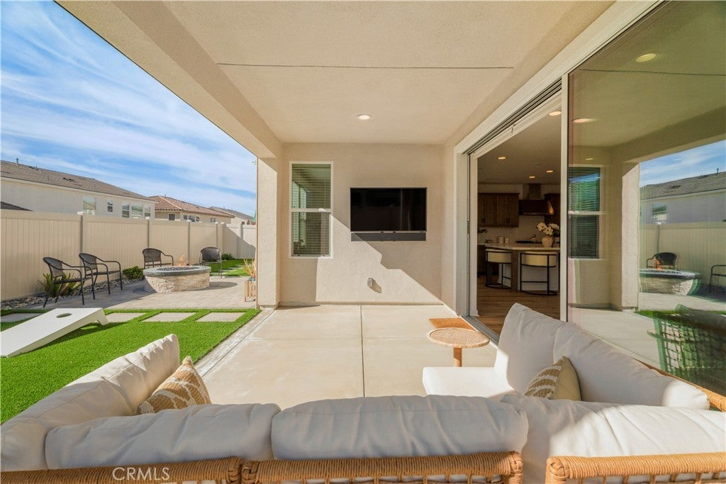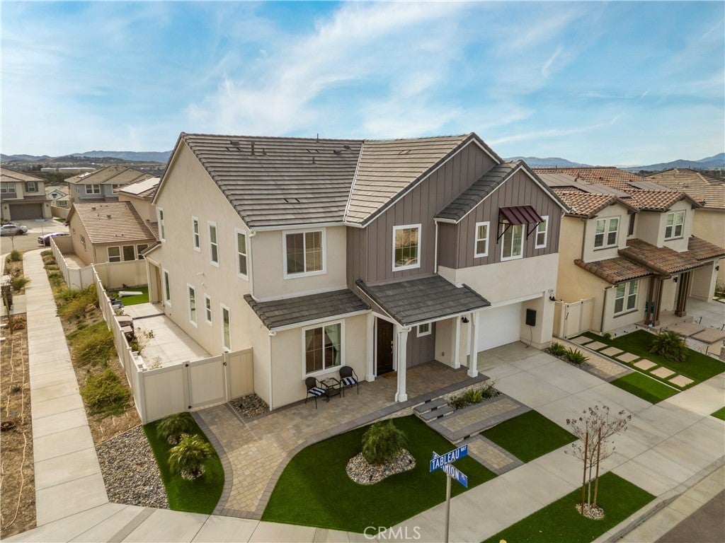 Welcome home to this stunning corner lot Skyline residence designed for real life, gathering, and growing together. This bright and beautifully neutral Lyra Plan 3 offers 5 bedrooms, 4.5 baths, a spacious loft, a downstairs den, and a rare multi-gen suite with its own private entrance, perfect for extended family or guests. From the moment you step inside, you’ll feel how open and welcoming this home is. Luxury vinyl plank flooring, recessed lighting, quartz countertops, and a custom built-in electric fireplace add warmth and style throughout. The open concept layout flows effortlessly, making everyday living and entertaining feel easy and connected. At the heart of the home is a gorgeous chef’s kitchen that overlooks the dining area, family room, and backyard. Featuring upgraded white quartz countertops, a timeless tile backsplash, warm brown shaker cabinetry, stainless steel appliances, a farmhouse sink, and a walk-in pantry. Just off the kitchen is a thoughtfully designed guest wing with its own bedroom, full bath, and additional living space. A flexible downstairs den near the entry offers the perfect spot for a home office, playroom, or second living area. Upstairs, you’ll find a large open loft, a well appointed laundry room with plenty of storage, and the remaining bedrooms, one with its own en-suite bath. The private primary suite is a true retreat, complete with peek-a-boo mountain views and sparkling city lights at night. The spa-like bathroom features dual sinks with white quartz countertops, an oversized soaking tub, a tiled walk-in shower, upgraded flooring, and a generously sized walk-in closet. Step outside through expansive California doors to a backyard that truly completes the home. Perfectly manicured and designed for indoor-outdoor living, it offers a covered California room with a drop down screen, a built-in fire pit, spacious side yards, and plenty of grassy space for kids and pets to play. Additional highlights include direct access to a two car garage with ample storage and close proximity to Skyline’s sought-after amenities. Enjoy Basecamp, and the Lookout, playgrounds, clubhouse, resort-style pool and spa, splash pad, BBQ areas, and a glass-enclosed gym, all set against breathtaking valley views. Miles of hiking trails, nearby shopping, and easy access to the 14 freeway make everyday life seamless. This is more than just a house, it’s a place to create memories, and grow for years to come.