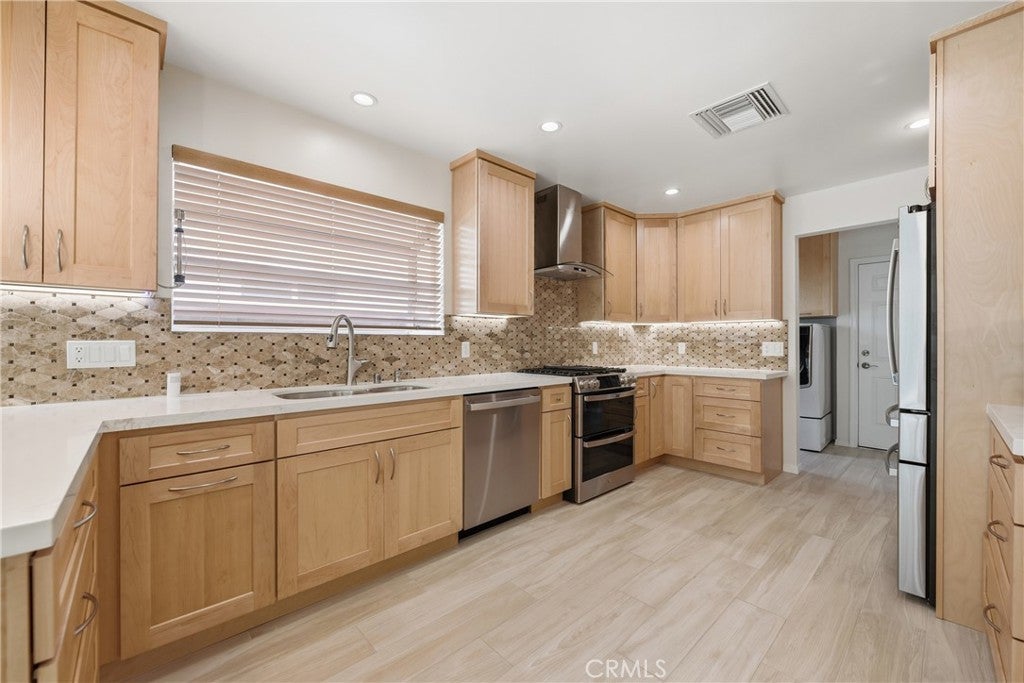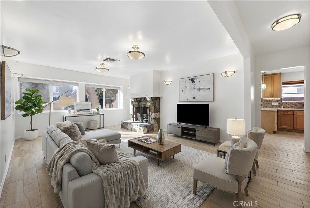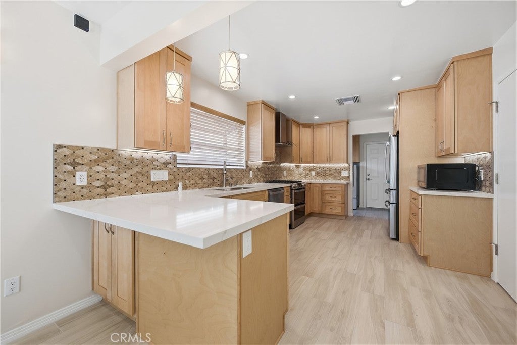 Stylish, smart, highly upgraded 3-bedroom 2-bath home with paid for solar and all appliances included! Thoughtfully designed for the California lifestyle, this home blends comfort, smart technology, quality craftsmanship and an impressive list of modern upgrades throughout. Recent improvements include a new roof (2024), owned solar system, fully remodeled kitchen (2024) featuring GE Profile appliances, custom cabinetry with soft-close drawers and doors, quartz countertops and a walk-in pantry. The adjacent laundry room is equipped with new (2024) cabinetry and an LG washer and dryer. Additional upgrades include a tankless smart water heater with recirculation pump, copper piping, and Italian porcelain plank flooring throughout the home. Natural light fills the spacious living room and family room with a dual sided fireplace between the two rooms. The family room showcases a custom mantel and enhanced electrical and data wiring-ideal for a home office set-up. The remodeled hall bathroom features a luxurious porcelain tile shower with linear drain and a bidet toilet with heated seat. The primary bedroom offers dual closets and an en-suite bath with large soaking tub and bidet toilet. Bedroom three includes it's own dedicated climate system for year-round comfort. Step outside to a private backyard retreat with a fiberglass coated swimming pool, covered patio, and ample space for entertaining. Additional highlights include central HVAC, an oversized two car garage and extensive smart home features such as Lutron Caseta smart switches, Lutron Serena smart blinds, smart alarm system with cellular connection, and smart lighting throughout. The home is fully networked with CAT 6 wiring, AT&T and Spectrum fiber connections, and a complete household network system including an Apple Airport extreme router. Ideally located near hospitals, dining, shopping, NOHO Arts district, and convenient freeway access. Don't miss the opportunity to make it yours!