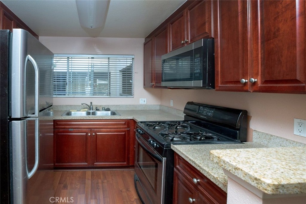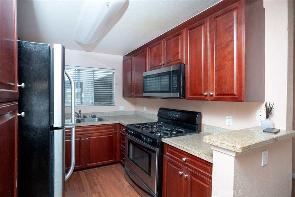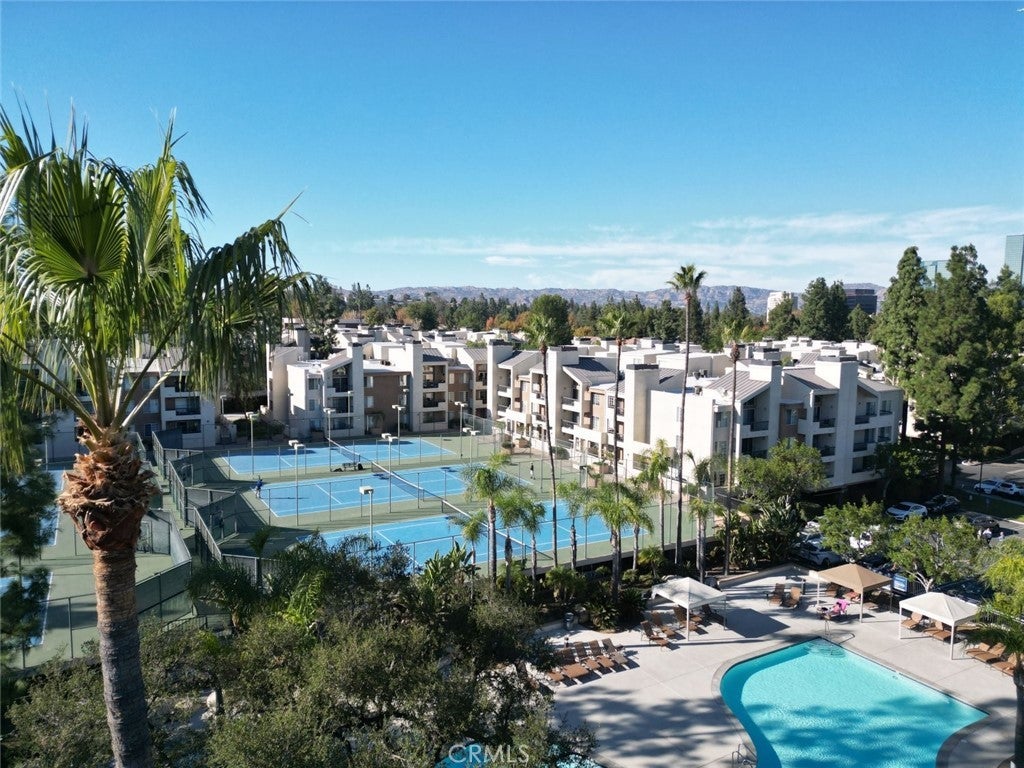 Experience the pinnacle of resort-style living in this upgraded 2-bedroom, 2-bathroom condo in the Metropolitan community. The unit boasts a spacious balcony for outdoor relaxation and a stylishly upgraded kitchen featuring modern cabinets, granite countertops, and stainless steel appliances, including a gas oven, range, built-in microwave, and dishwasher. The bathrooms are equally elegant with granite countertops, and the convenience of an in-unit washer and dryer adds to the appeal. Private parking is included with two designated spots accessible from the Owensmouth entrance. Nestled in a safe and quiet neighborhood with beautiful landscaping, this condo is located in the quieter section of the complex, away from freeways and busy roads. Its location provides unparalleled convenience, within walking distance of Warner Center Park, The Village, AMC theaters, restaurants, and the Metro line. Residents enjoy a variety of amenities, including four swimming pools, a spa, a sauna, a fitness center, six lighted tennis courts, two racquetball courts, a children's play area, 24-hour security, and secured buildings. This property offers the perfect blend of luxury, comfort, and convenience in an unbeatable location.