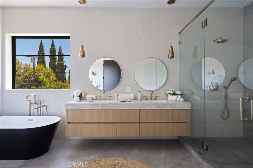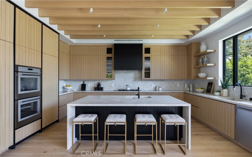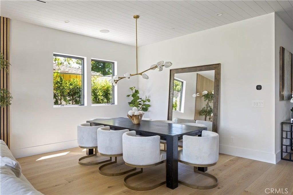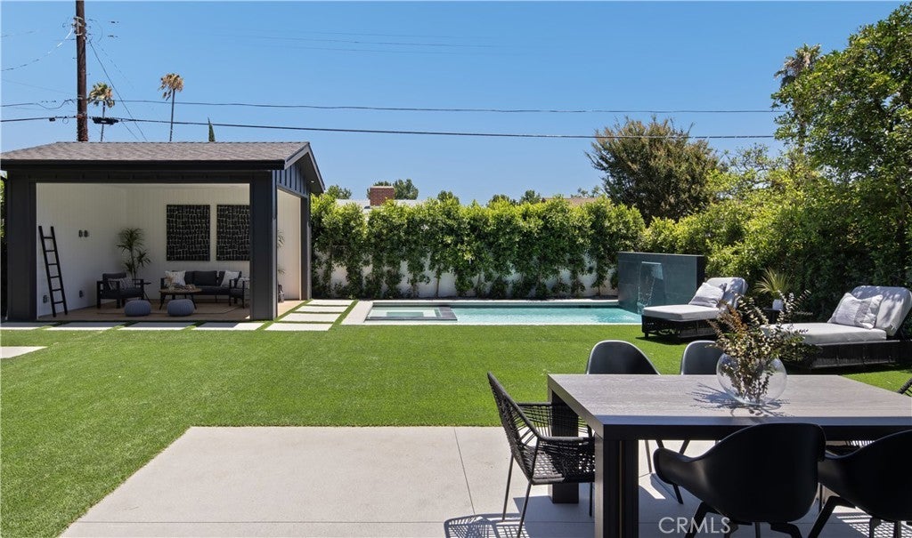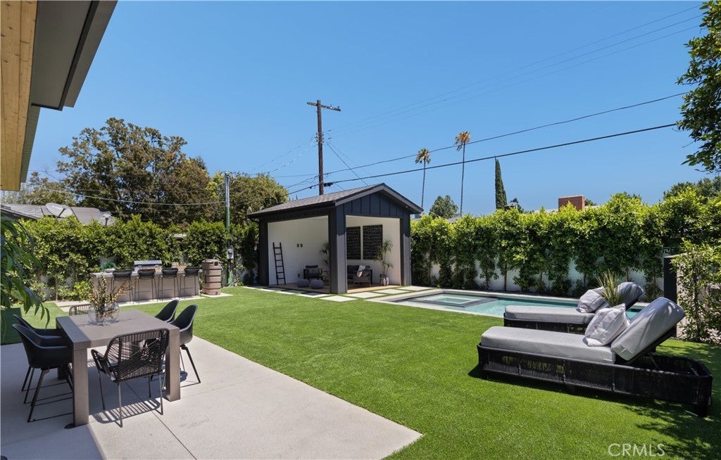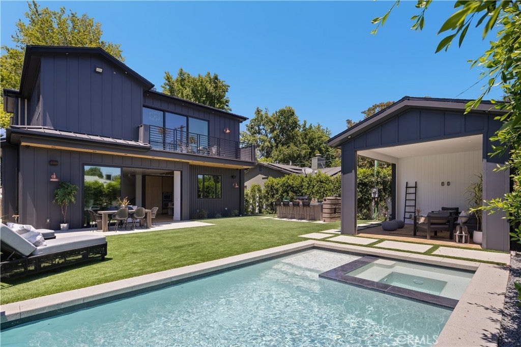 Spectacular Modern Farmhouse situated in the prestigious Sherman Oaks pocket, a neighborhood known for its charm and community spirit. This stunning five-bedroom, 5 1/2-bathroom masterpiece spans approximately 3,500 square feet of luxurious living space on a generous lot. Designed and meticulously crafted with a keen eye for the finest designer finishes, it offers breathtaking aesthetics and comfort, creating a unique, welcoming atmosphere.As you step inside, you're greeted by an open, free-flowing layout bathed in natural light, enhancing the home's stunning features and innovative design. This home is outfitted with state-of-the-art smart home technology, putting control and convenience at the touch of a button.At the heart of the home lies a custom chef's kitchen, equipped with top of the line appliances, and ample space for preparing gourmet meals. From quick breakfasts to elegant dinner parties, this kitchen serves every occasion with ease.The main bedroom, a sanctuary of calm and opulence, is paired with an ensuite bath for a resort-like experience, surrounded by natural wood and privy to the home's brilliant design.Outside, the property continues to impress. A sprawling, private backyard creates a resort-like ambiance, complete with a sparkling pool, spa, and beautifully designed barbecue area. The grounds are delicately landscaped with mature Ficus trees and an elegant cabana, perfect for entertaining on warm summer nights or simply unwinding after a long day.Don't miss the opportunity to own this unique Modern Farmhouse, a symbol of timeless elegance and sophistication. Experience the perfect blend of lifestyle and luxury at 5222 Ventura Canyon Avenue.