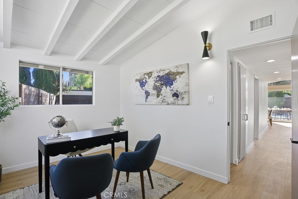 Welcome to this beautifully updated Winnetka home, perfectly suited for the California lifestyle. Situated in a highly sought-after Woodland Hills–adjacent neighborhood, this move-in-ready residence offers a seamless blend of comfort, style, and convenience. A striking custom double-door entry creates an inviting first impression and opens into a light-filled interior that has been extensively refreshed. Highlights include a new roof, luxury vinyl plank flooring throughout, fresh interior and exterior paint, recessed lighting, and updated fixtures. The remodeled kitchen features granite countertops, tile flooring, new hardware, along with updated electrical as needed. Both the hall bathroom and primary bathroom have been upgraded with new fixtures and modern vanities. Additional improvements include a new sliding glass door off the living room, epoxy-coated garage floor, and updated lighting throughout. The private backyard is ideal for entertaining and relaxation, showcasing a pool and refreshed landscaping with new sprinklers, gravel, mulch, and plantings. A new side fence and front gate enhance privacy and usability. The detached garage and side yard configuration may offer potential for RV access and future ADU possibilities. Centrally located just minutes from Westfield Topanga Mall, The Village at Westfield Topanga, Pierce College, fine dining, and popular restaurants, this inviting home delivers the best of Southern California living. Don’t miss the opportunity to own this exceptional Winnetka charmer.