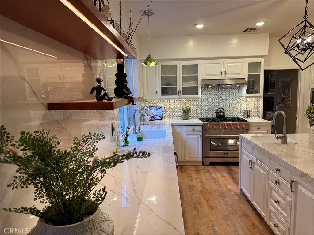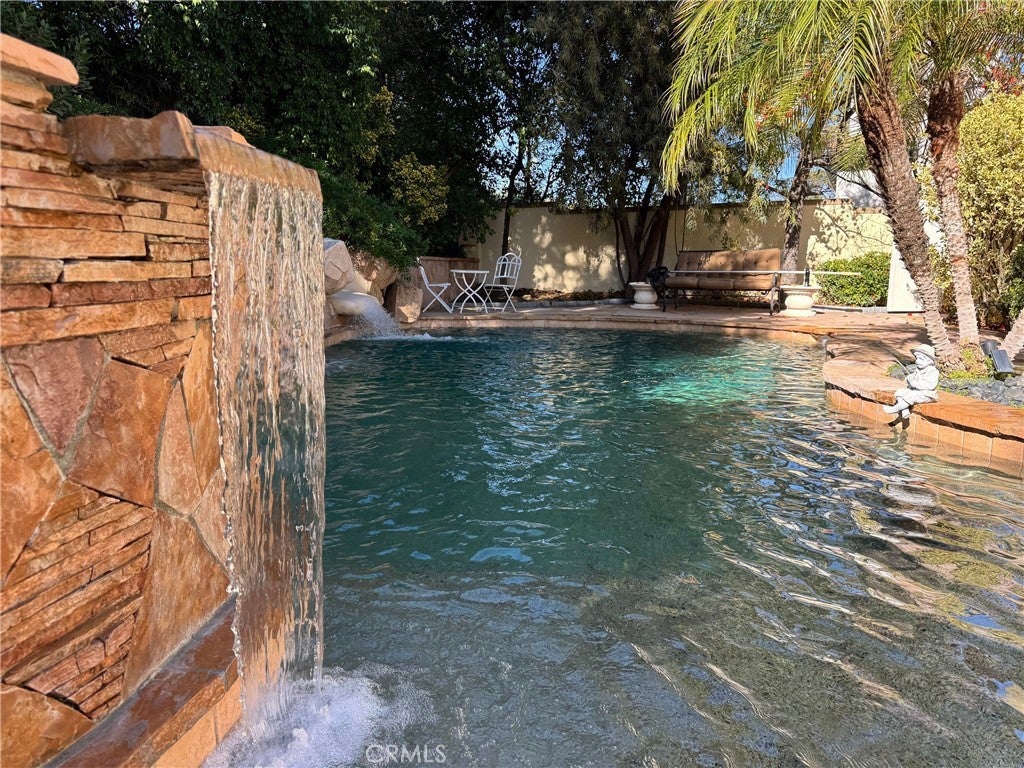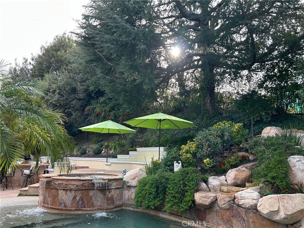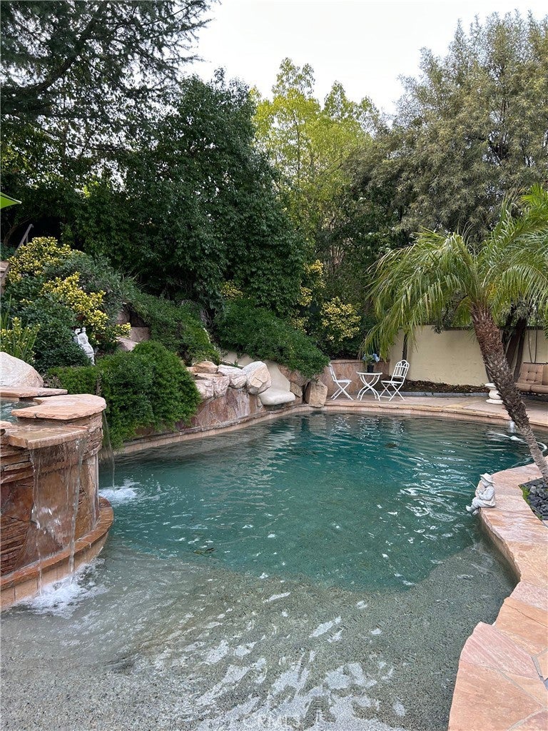 Nestled in a lush tree-lined private Cul-de-Sac Oasis with No HOA and owner owned solar panels for electric. This meticulously kept home greets you with two graceful birch trees on your front lawn that lead to estate doors that welcome you in—left weather conditioned on purpose, so you pick the finish that sings to you. Resort style backyard with built-in kitchen, draped in lush green foliage and large trees offering privacy and escape. Pebble tech beach entry pool, built-in slide, hidden beside a waterfall. Pool is heated with owner owned solar, so pool is always warm and ready for a swim. Half moon shaped stone bar to set the entertaining atmosphere. Inside the home the decor is a blend of contemporary fused with transitional. Smart tech for effortless living, built in charging station, that disappears, remote control blinds, touchless faucet, remote control led lighting. Spacious chef style brand new kitchen, brand new appliances, brass burner Forno oven, wine cooler and beverage center. Room for dueling chef's to prepare a meal. Discreetly installed movie theatre blended into a comfortable sitting room. Fully equipped gym room, perfect for you and your trainer. Unique parking, can accommodate 6 plus vehicles. Perfect location to run a home based business. Can move in quickly with comfort without the hassle of waiting for a moving truck. Homeowners are generously including hand picked curated luxury goods, inside and outside, leather couch sets, bar stools, bedroom set, kitchen essentials ,too much to list. A real turn key! Bring your imagination, and your own design, the stage has been set.