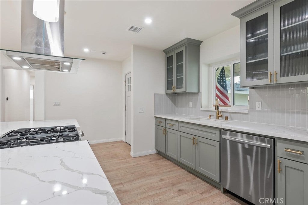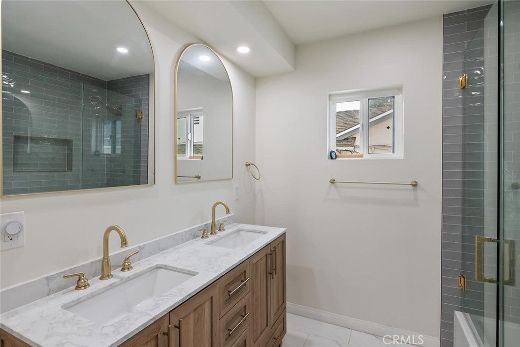Beautifully renovated home in the desirable city of Northridge featuring 4 bedrooms and 3 bathrooms. This thoughtfully designed residence offers an open floor plan with custom cabinetry, quartz countertops, and brass finishes. French doors lead to a newly built covered patio, ideal for entertaining. All bathrooms have been fully remodeled with new tile, vanities, and fixtures. Situated on a large 7,000+ sq ft lot with new energy-efficient windows and a new shingle roof. The attached two-car garage is fully drywalled and epoxied, and a custom gate provides added privacy. Conveniently located near CSUN, shopping, dining, and more.