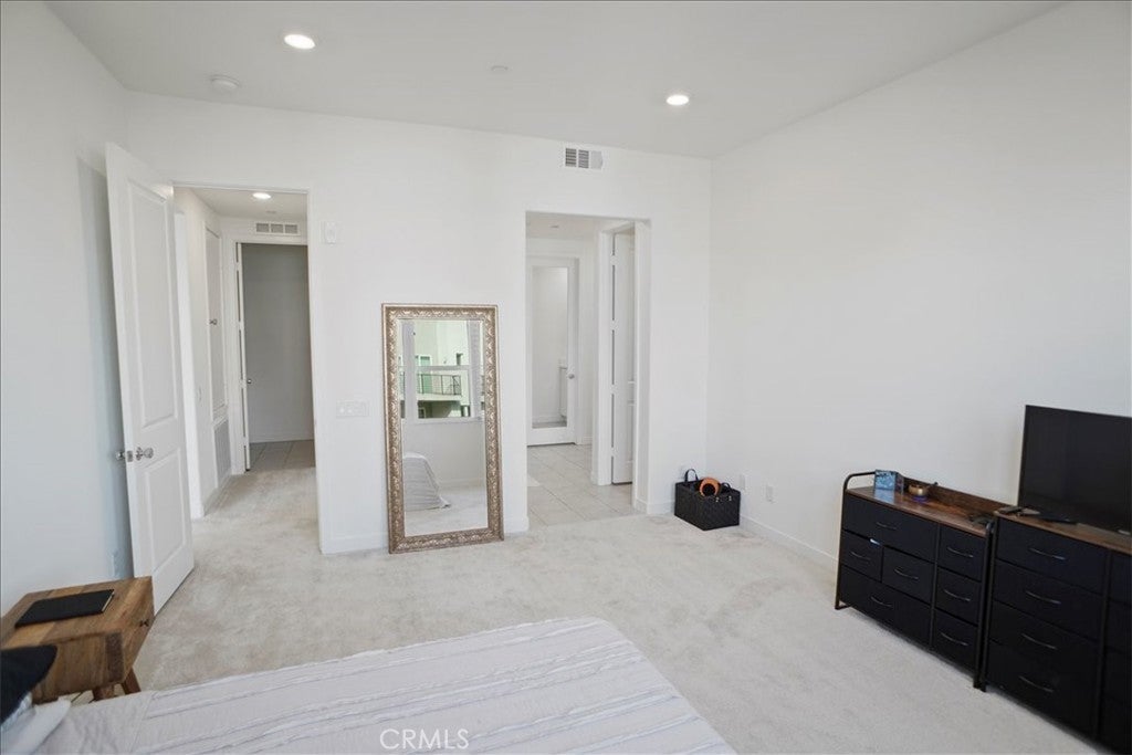 Beautiful Newer Construction Luxury Townhouse in Five Points with solar, just behind Magic Mountain! Built in 2022, this stunning home offers 3 bedrooms and 2 bathrooms, all on one level within a secure building. The upgraded kitchen features a large island with breakfast bar, stainless steel sink, dishwasher, oven, and microwave, white cabinetry with ample storage, granite countertops and backsplash, tile flooring, and recessed lighting. The open and spacious living room boasts new carpet, abundant natural light, large windows, and a sliding glass door that opens to a large private patio with a view—perfect for relaxing or entertaining. All three bedrooms are generously sized. The primary suite includes wood shutters, recessed lighting, an attached bathroom with dual sinks, walk-in shower, linen closet, and a walk-in closet. The hallway bathroom features an upgraded vanity with a shower/tub combination. Additional highlights include a separate laundry room, two-car garage, and plenty of guest parking. Conveniently located near shopping, schools, and freeway access, this home is part of a community offering resort-style amenities you’ll absolutely love. A must-see!