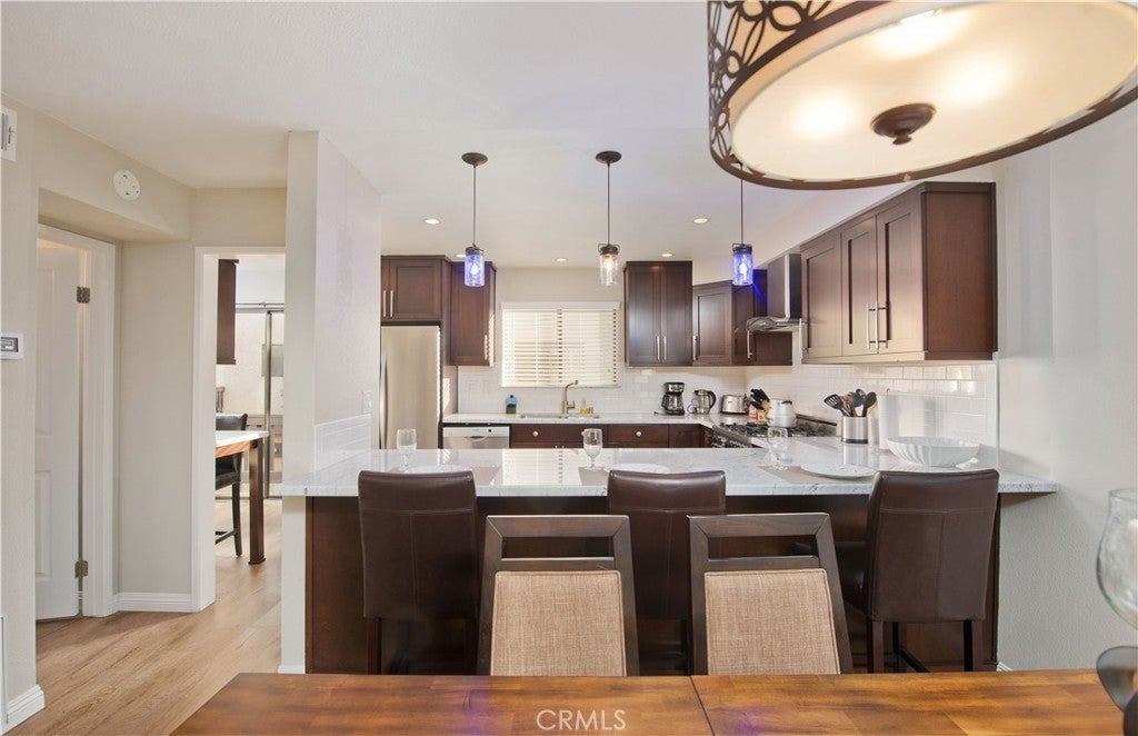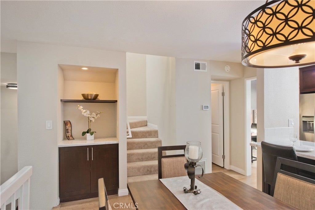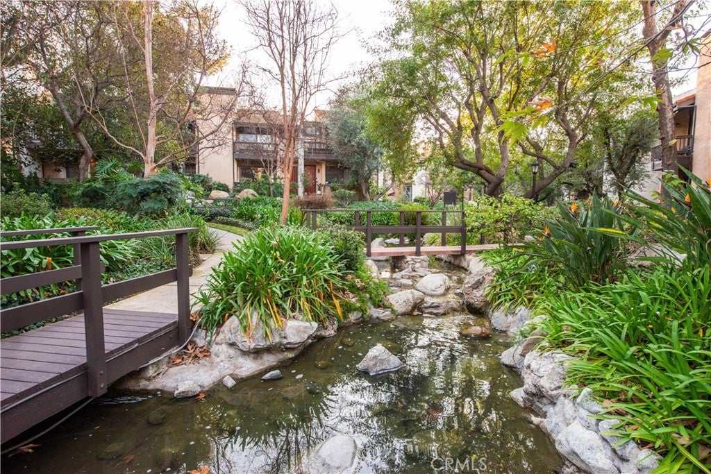 Welcome to this beautifully situated fully furnished 2-bedroom plus bonus room, 2.5-bath townhome, surrounded by lush greenery and offering stunning park views. With 1,526 square feet of thoughtfully designed living space, this home is truly an entertainer’s dream. An updated open-concept layout features recessed lighting throughout, three private patios, and beautifully appointed furnishings, creating a seamless blend of comfort, style, and indoor-outdoor living. The upgraded kitchen boasts stainless steel appliances and opens to a convenient office nook and adjacent patio—perfect for work or relaxation. Upstairs, you’ll find two spacious bedrooms. The primary suite features vaulted ceilings, a private balcony with park views, two closets including a walk-in closet, and an upgraded ensuite bathroom. The second bedroom also offers a walk-in closet and its own upgraded bathroom. The lower level provides a versatile bonus room ideal for a home office, movie theater, gym, or additional living space, along with a washer and dryer and direct access to a two-car garage. The HOA covers internet, water, basic cable, and earthquake insurance. Residents enjoy an abundance of amenities, including walking paths, creeks, ponds, tennis courts, pools, spas, and recreation rooms. Ideally located just minutes from shopping, dining, and entertainment, this home offers the perfect balance of comfort and convenience.
