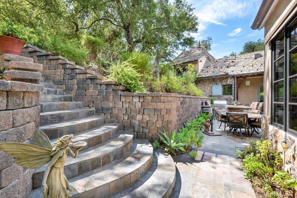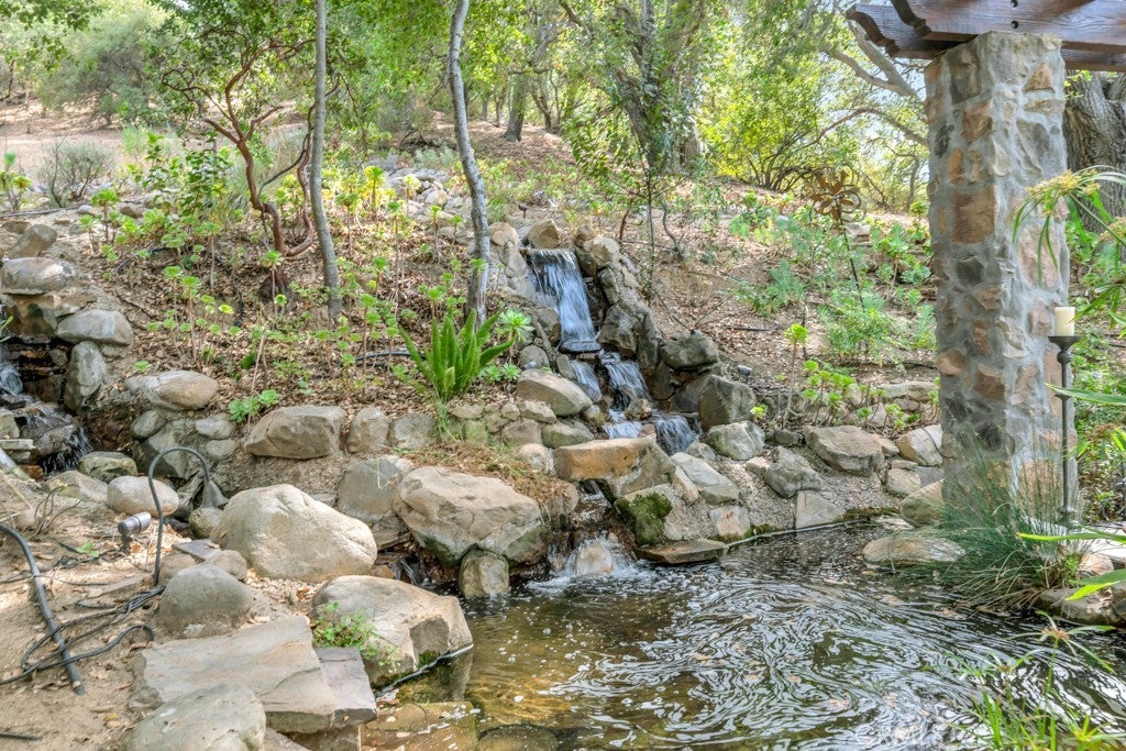 Step into a world of timeless elegance where nature and architecture meet in perfect harmony. Just minutes from Calabasas, Viewpoint School, and The Commons, this extraordinary custom estate offers the rare opportunity to live in a castle-like sanctuary surrounded by nearly 1.5 acres of enchanting oak trees. A meandering manmade creek flows through the property, creating a serene backdrop for multiple outdoor living spaces designed for both intimate evenings and grand gatherings. Every detail of this 3,000 sq. ft. residence, reflects artistry and craftsmanship—its stone exterior evokes the romance of old-world European estates, while its interiors blend warmth, sophistication, and comfort. Inside, discover 4 luxurious bedrooms, 4 bathrooms, a stately office with private entrance, a mud room, formal dining room, and an inviting family room that opens to the gourmet kitchen. Natural light floods the home, highlighting its timeless finishes and the seamless connection to the outdoors. More than a home, this is a private retreat—a place where elegance, serenity, and exclusivity create an unparalleled lifestyle in the heart of Topanga.