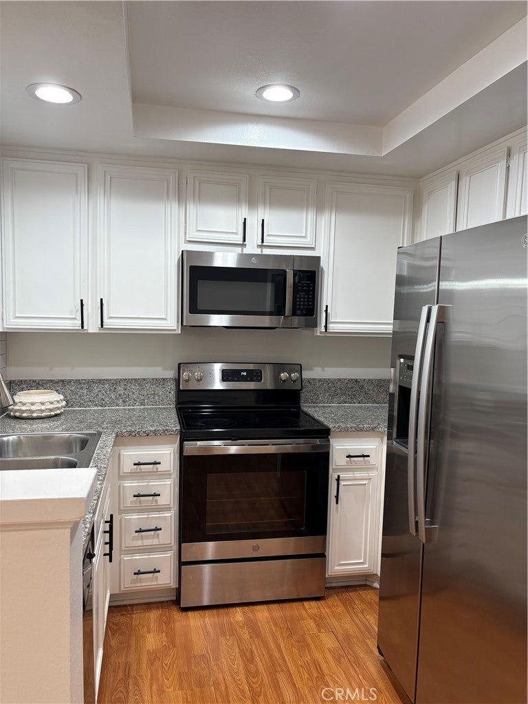 Gorgeous Full Two Bed / Two Bath condo with plenty of privacy, kitchen includes all appliances , first floor no steps, natural sunlight, bright and many upgrades / updated located in the highly desired area of Woodland Hills. Condo is turnkey and move-in-ready rental includes all brand new appliances, granite countertops, recessed lighting with smooth ceiling , hardwood floors, upgraded bathrooms, Nest AC/Heat, large private patio with a beautiful view. Kitchen offers an open layout that overlooks living room and dining area, condo offers many amenities. Each bedroom is very spacious, with mirrored closets and plenty of space. The floorplan separates the two bedrooms and bathrooms with the living and dining area to ensure privacy. The community features all of these amenities: heated luxury pool, jacuzzi / spa area, gym/fitness center, recreation room with pool table, basketball and private tennis courts, dog park / walk area for pets, 24-hour security with gated parking of two large spaces side by side. Conveniently located near the Topanga Canyon Shopping center, Gourmet Restaurants, and Plenty of Entertainment Options, Privacy and No Steps all on the first floor.