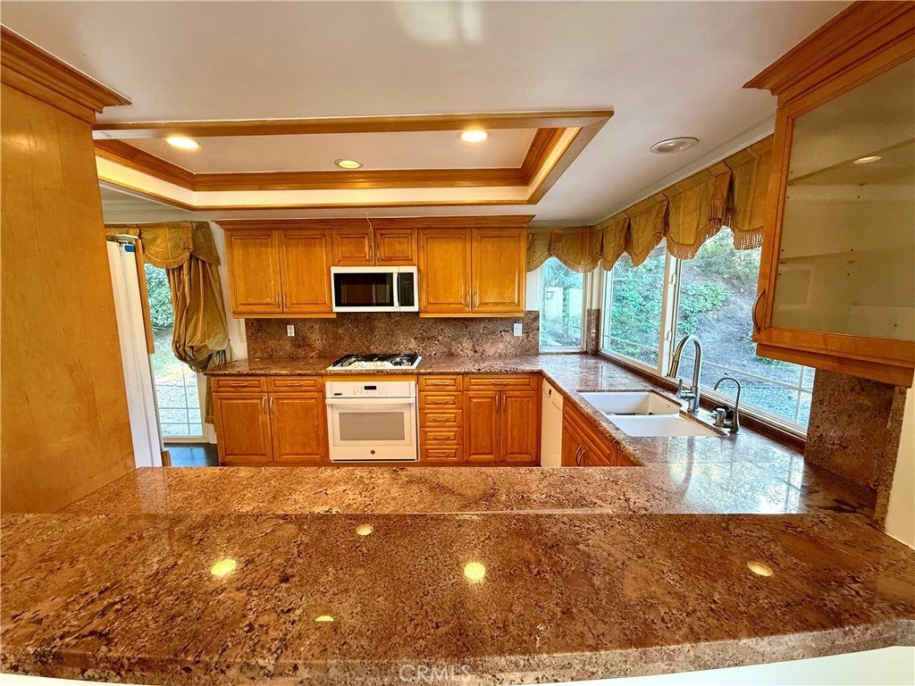 Charming one story traditional house in prime Granada Hills neighborhood in a cul-de-sac w/canyon views. Open floor plan w/spacious rooms. Great for entertaining. Large living room w/marble fireplace & high ceilings. Formal dining area. Remodeled kitchen w/granite counter tops. Large primary w/private bathroom. Central air & heat. Plenty of closet space. Private backyard w/patio and views. 2 car attached garage w/direct access.