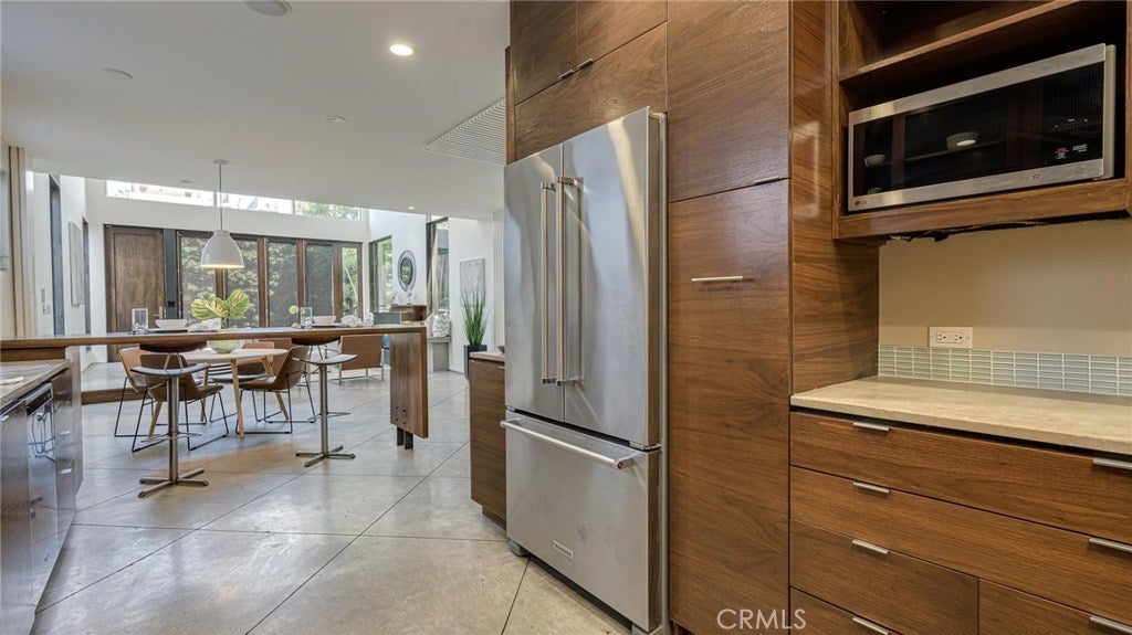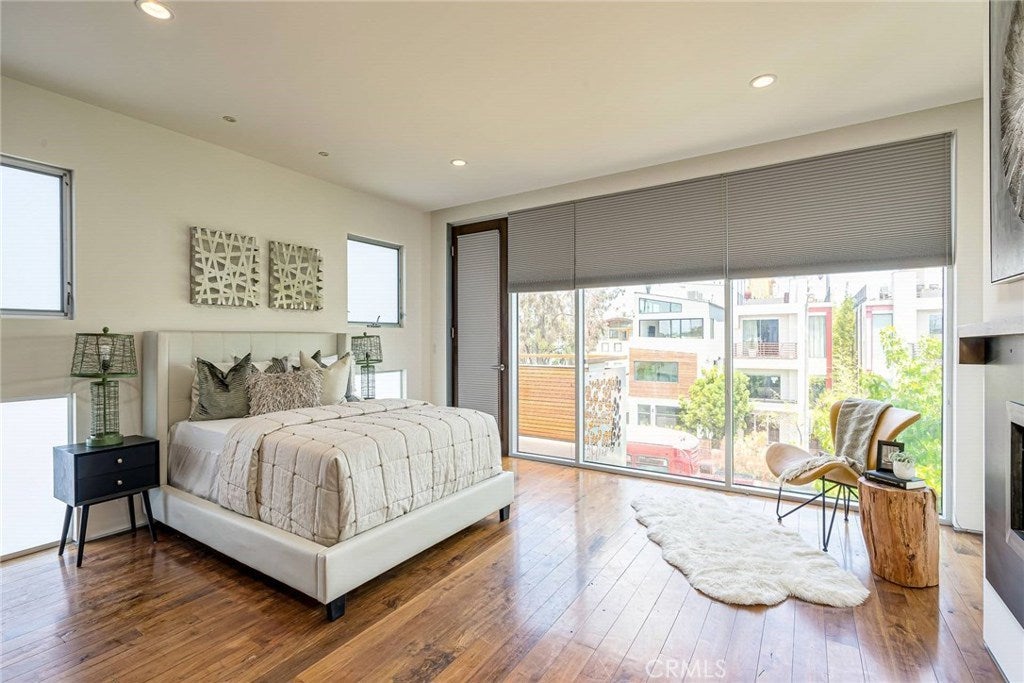 Chic and Sophisticated this Modern Architectural 4 bed 3 bath home with an incredible roof top deck is perfect for entertaining and enjoying the Venice lifestyle. Warm and inviting, the light filled living room with floor to ceiling windows, fireplace, concrete flooring and steel accents opens to the Chef's kitchen equipped with custom mahogany cabinetry, Carrera counter tops, glass mosaic back splash and high end stainless steel appliances. The floating steel staircase leads you to the second floor with two sizable bedrooms, designer bath, laundry room and an artistic space overlooking the living room perfect for a study or reading lounge. The third floor boasts a generous primary bedroom complete with its own private bath and decorative touches and a 4th bedroom and a media room. The roof top deck with its' 360 degree city & mountain views adds to the unmistakable ambiance of Venice. Two car attached garage. Close to Abbot Kinney, the canals & the beach!