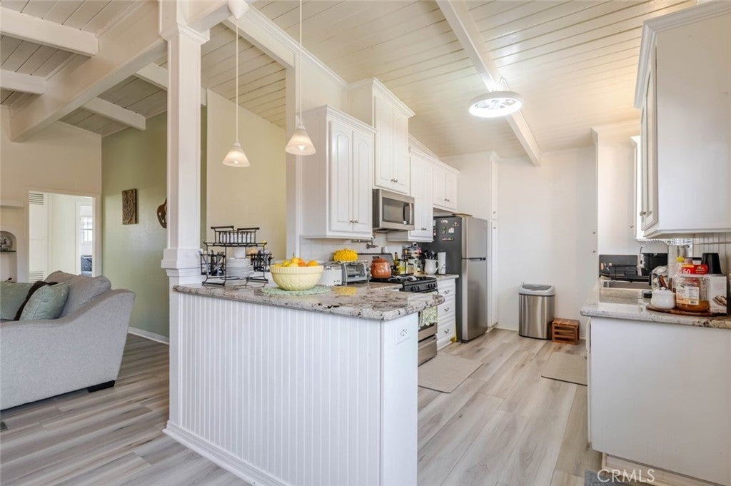 Beamed Ceilings, Ceiling Fan(s), Eat-in Kitchen, Granite Counters, Open Floorplan