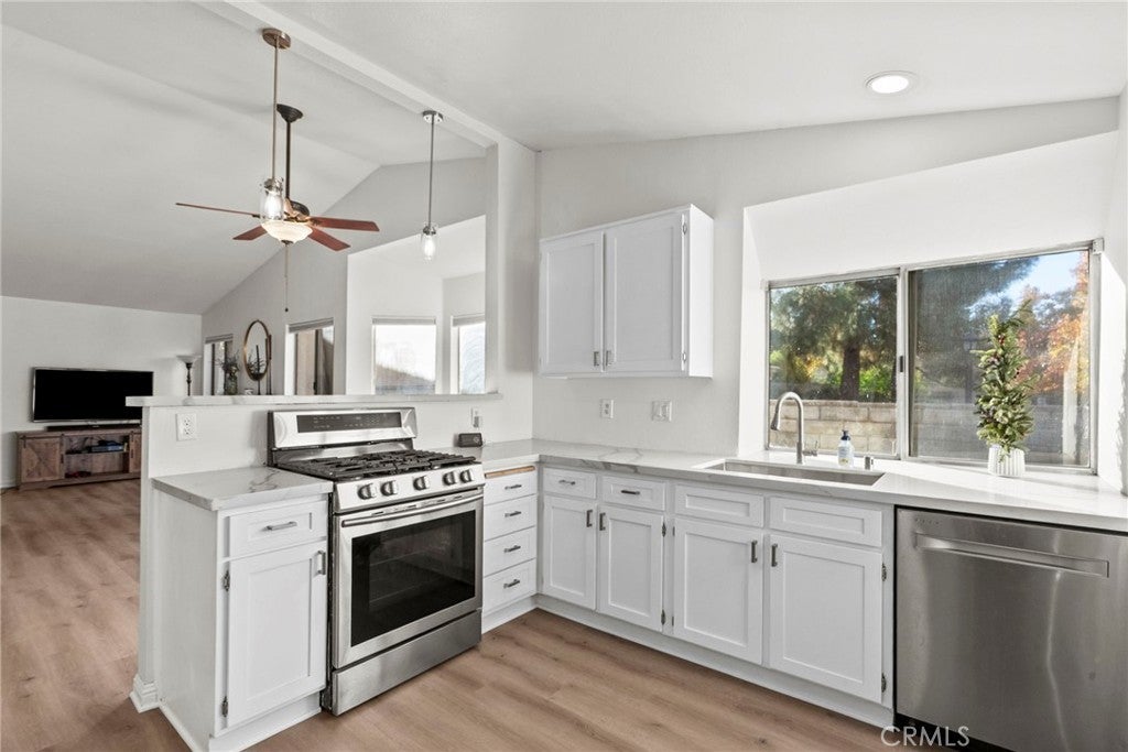 This beautifully updated single-story 3-bedroom, 2-bathroom condo offers the perfect balance of comfort, style, and convenience. Located in a quiet, safe neighborhood with top-rated schools, this home is ideal for families with young children, busy professionals, or retirees looking for the ease of single-level living with no stairs. Step inside to discover a newly upgraded kitchen featuring modern finishes, a brand-new pantry, and plenty of space to cook. Both bathrooms have been tastefully remodeled, creating a fresh, spa-like atmosphere throughout the home. New flooring throughout and elegant fireplace upgrade featuring new tile. The inviting backyard offers a private outdoor space to unwind, garden—perfect for morning coffee, summer barbecues, or quiet evenings under the stars. Enjoy great amenities including three community pools, a relaxing spa, and scenic walking pathways that wind through beautifully landscaped grounds. With a low HOA of just $255 per month, no Mello-Roos, and easy access to shopping, dining, and the freeway, you’ll love the simplicity and lifestyle this home provides. If you’re looking for a home in one of Santa Clarita’s most sought-after areas, this charming single-story is the one you’ve been waiting for.