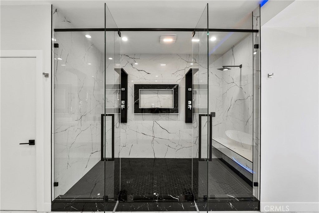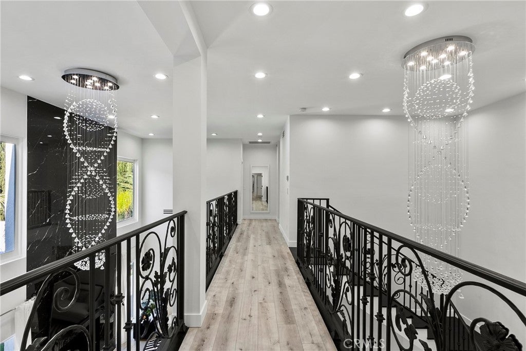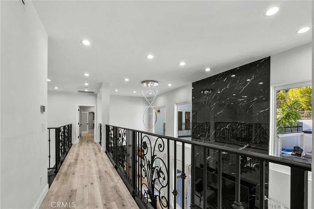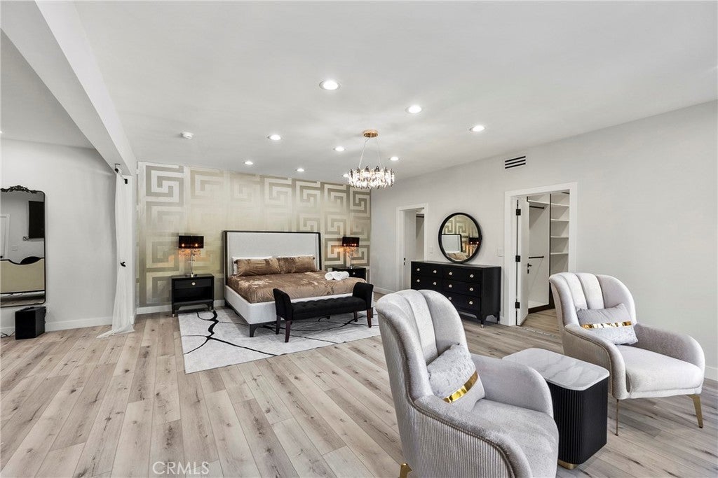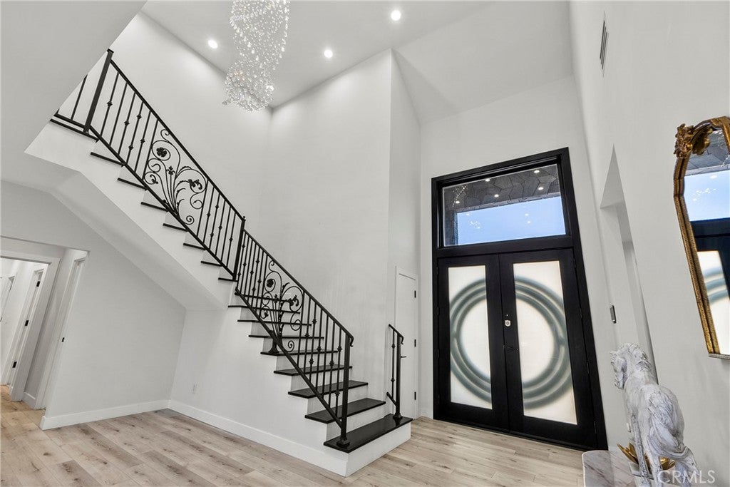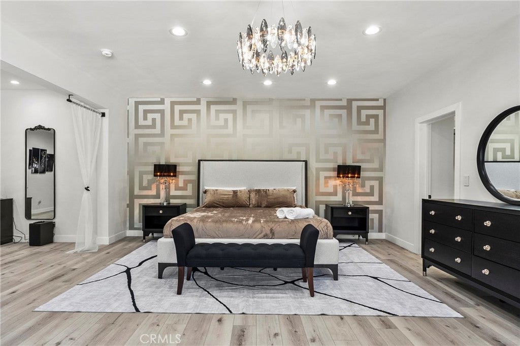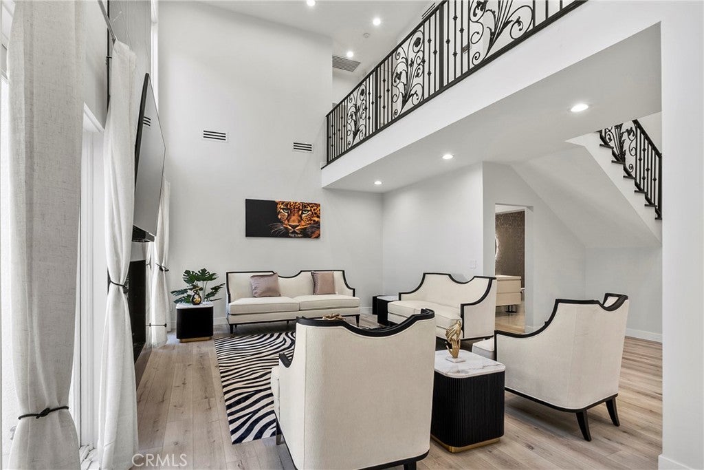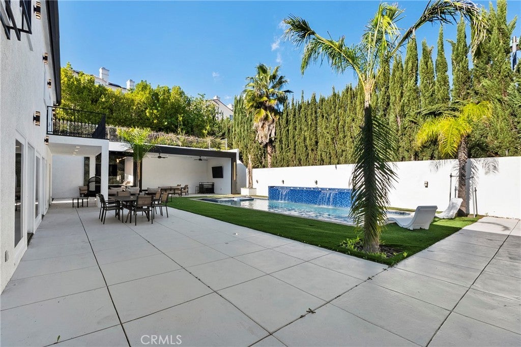 Situated on a sprawling 11,000+ sq. ft. lot in the prestigious Valley Circle Estates neighborhood of Woodland Hills, this fully furnished, tastefully updated home offers the pinnacle of modern luxury living and is appointed throughout with high-end designer furniture. A dramatic double-door entry opens to a grand foyer with soaring double-height ceilings, leading into an expansive open-concept floor plan filled with natural light. The formal living room is anchored by a striking floor-to-ceiling stone fireplace and oversized windows, while the sleek gourmet chef’s kitchen impresses with top-of-the-line appliances, quartz countertops, a waterfall island, and a generous pantry. Adjacent to the kitchen, the formal dining room provides an intimate setting for entertaining, and the inviting family room features an additional fireplace for relaxed everyday living. Designed for hosting, the spacious recreation room includes a built-in wet bar and two sets of French doors that open to a resort-style backyard featuring a sparkling pool and spa with waterfall, sports court, covered patio, built-in firepit, and mature hedges that create a private oasis. Upstairs, four generously sized bedrooms include an expansive primary retreat with a sitting area, four large closets, and a spa-like bathroom with an oversized steam shower, soaking tub, and double vanity, while additional amenities include three main-level bedrooms, a dedicated laundry room, and a three-car garage. Ideally located within a top-rated school district and just minutes from hiking trails, Warner Center, and premier shopping, dining, and entertainment at The Commons, Westfield Topanga Mall, and Topanga Village, this exceptional residence offers comfort, privacy, and refined luxury in one of Woodland Hills’ most sought-after communities.