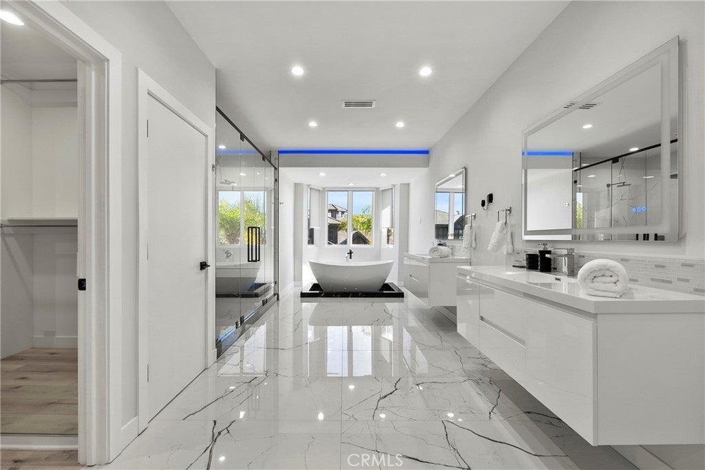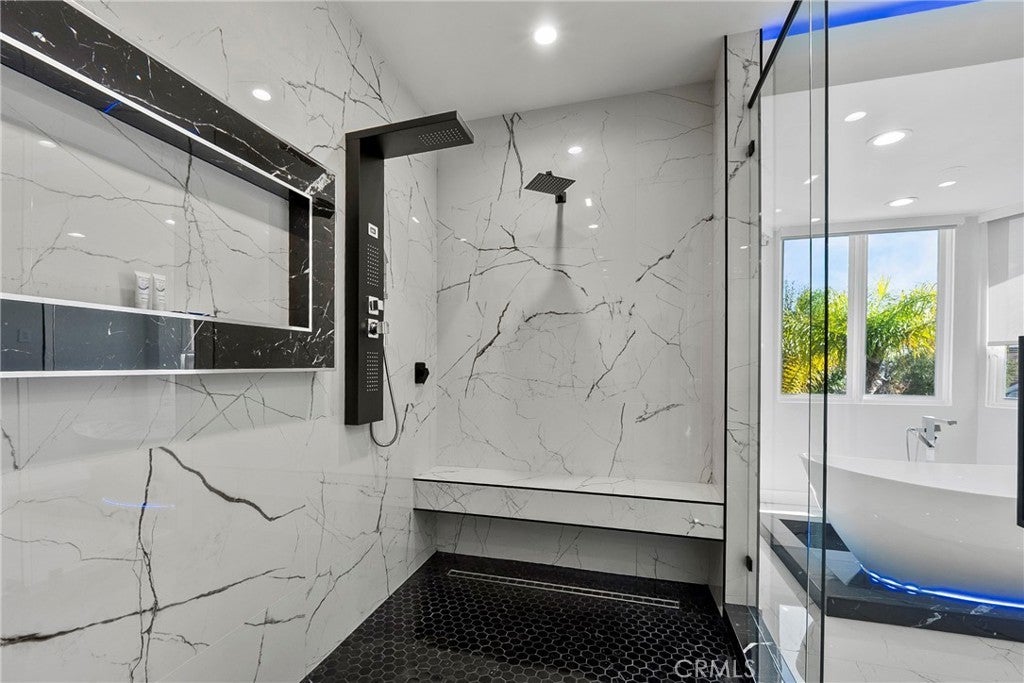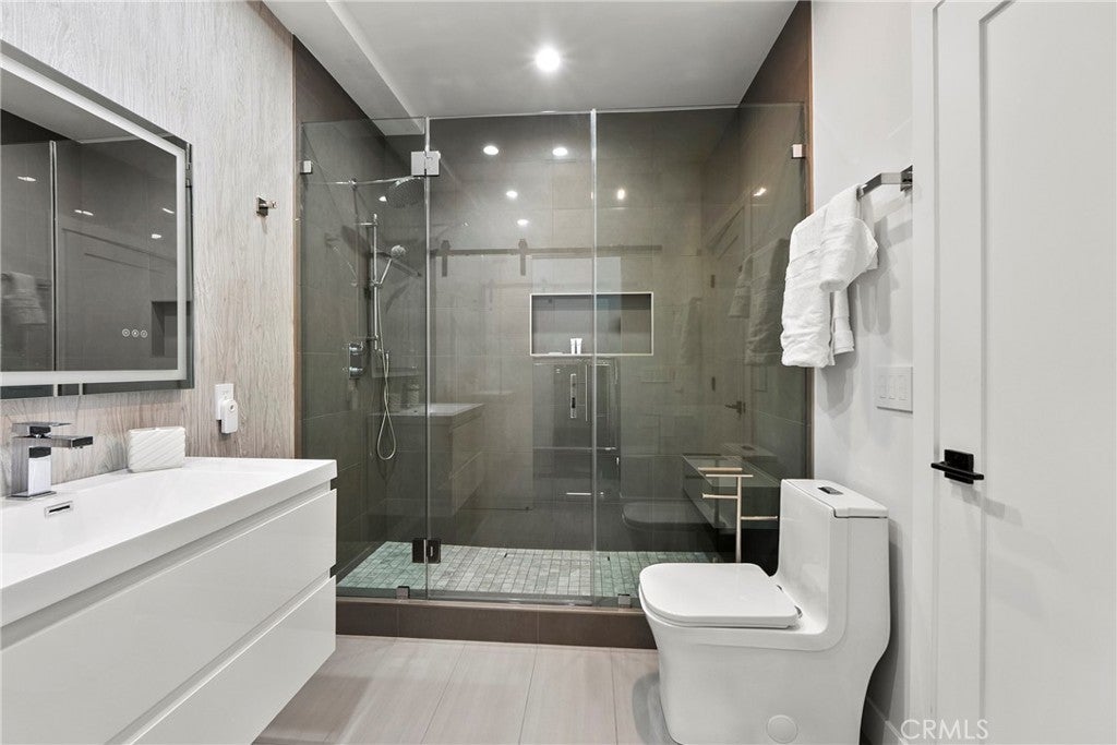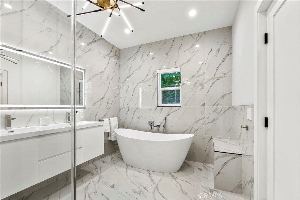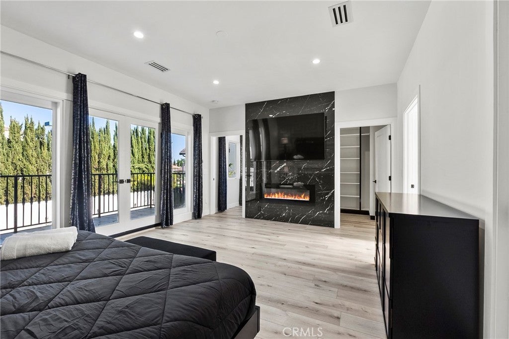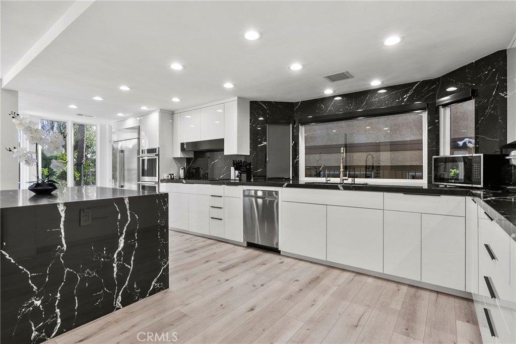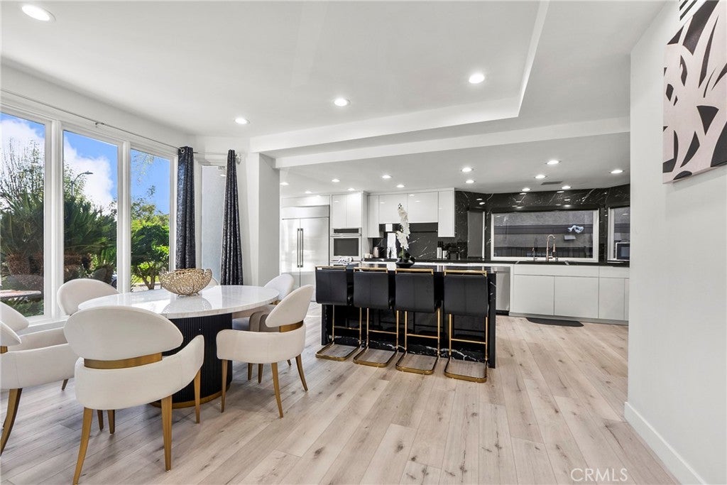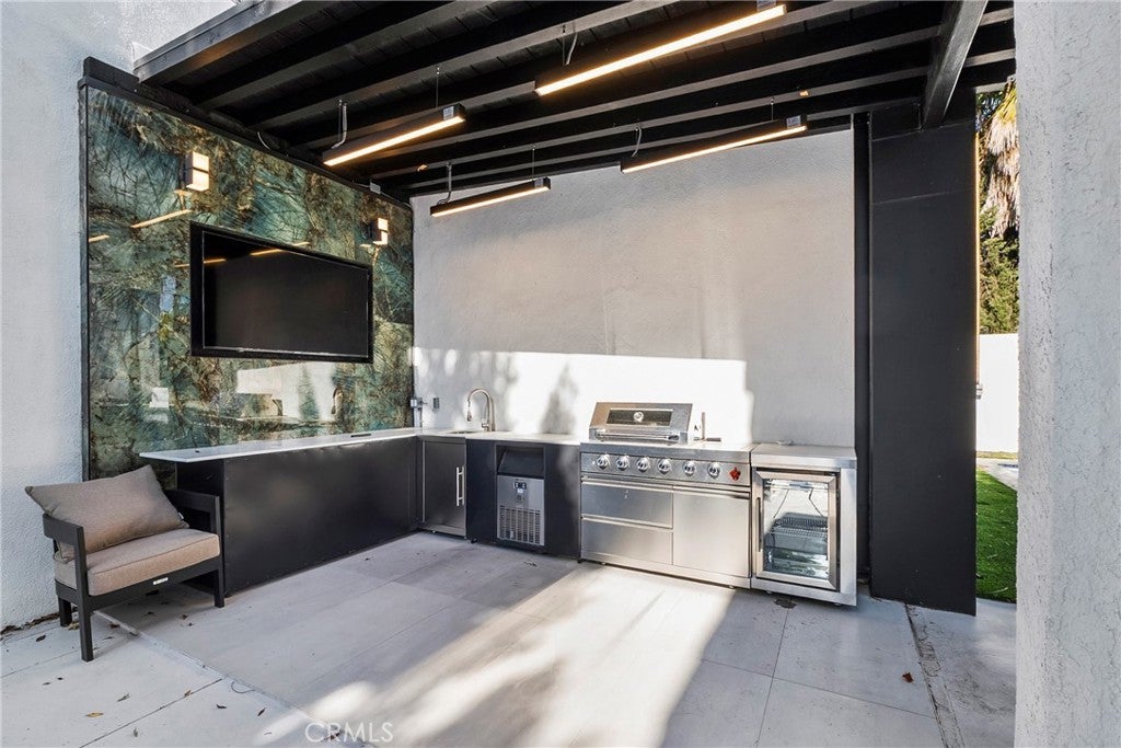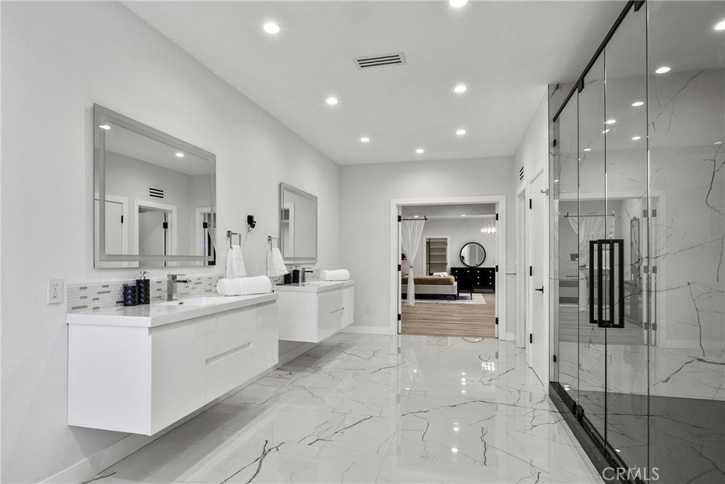 Situated on a sprawling 11,000+ sq. ft. lot in the prestigious Valley Circle Estates neighborhood of Woodland Hills, this fully furnished, tastefully updated home offers the pinnacle of modern luxury living and is appointed throughout with high-end designer furniture. A dramatic double-door entry opens to a grand foyer with soaring double-height ceilings, leading into an expansive open-concept floor plan filled with natural light. The formal living room is anchored by a striking floor-to-ceiling stone fireplace and oversized windows, while the sleek gourmet chef’s kitchen impresses with top-of-the-line appliances, quartz countertops, a waterfall island, and a generous pantry. Adjacent to the kitchen, the formal dining room provides an intimate setting for entertaining, and the inviting family room features an additional fireplace for relaxed everyday living. Designed for hosting, the spacious recreation room includes a built-in wet bar and two sets of French doors that open to a resort-style backyard featuring a sparkling pool and spa with waterfall, sports court, covered patio, built-in firepit, and mature hedges that create a private oasis. Upstairs, four generously sized bedrooms include an expansive primary retreat with a sitting area, four large closets, and a spa-like bathroom with an oversized steam shower, soaking tub, and double vanity, while additional amenities include three main-level bedrooms, a dedicated laundry room, and a three-car garage. Ideally located within a top-rated school district and just minutes from hiking trails, Warner Center, and premier shopping, dining, and entertainment at The Commons, Westfield Topanga Mall, and Topanga Village, this exceptional residence offers comfort, privacy, and refined luxury in one of Woodland Hills’ most sought-after communities.