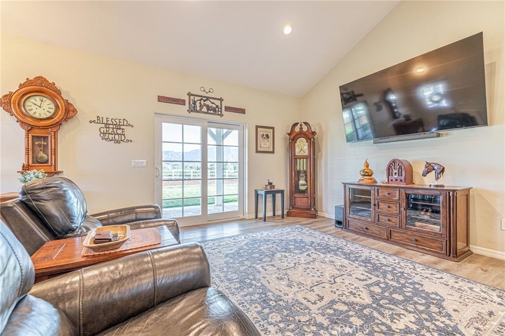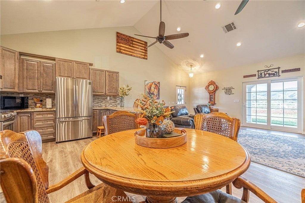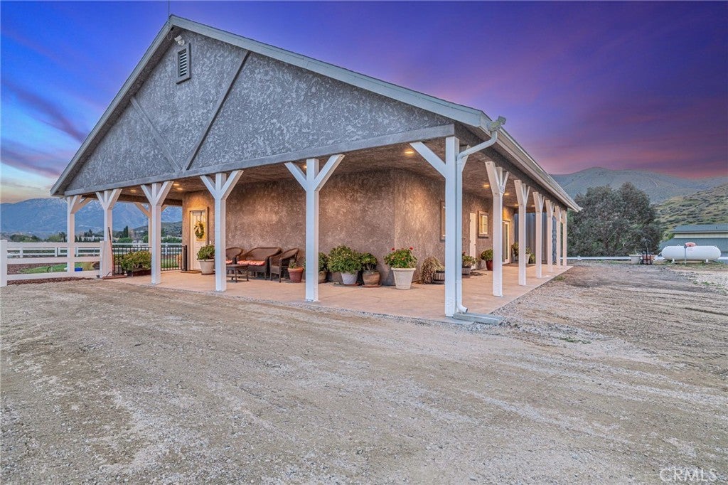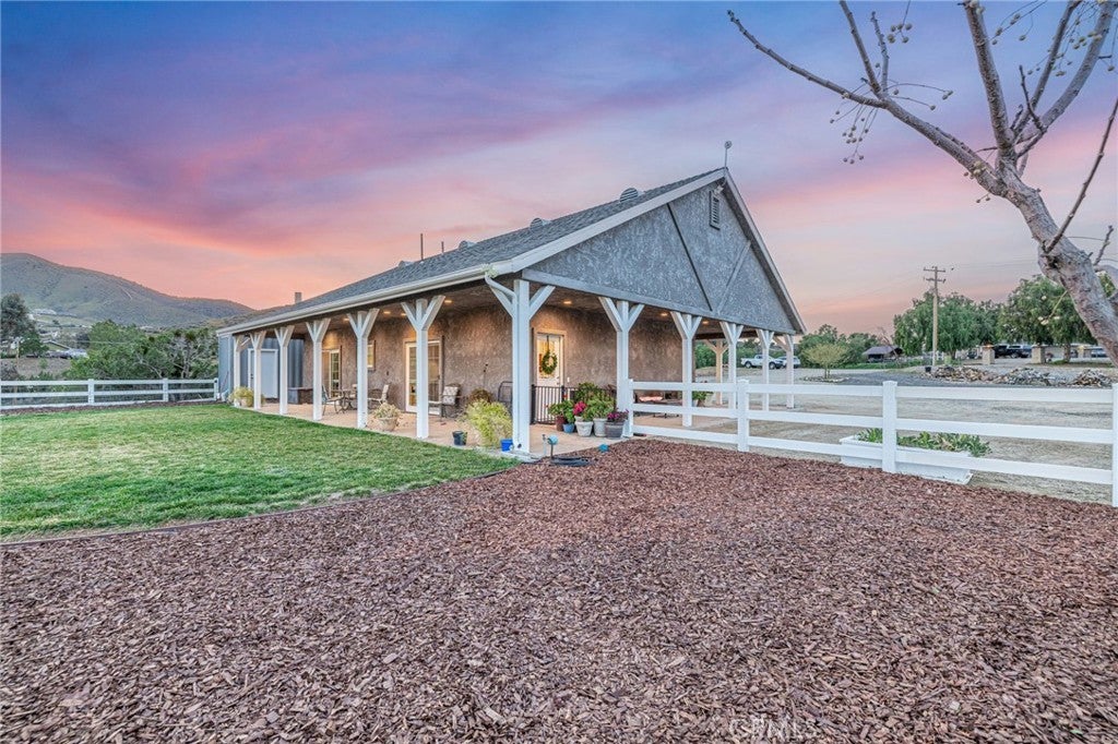 Welcome to your private country retreat showcasing stunning mountain views and tranquil surroundings. This newly built, meticulously maintained single-story home offers the ideal combination of rural charm and modern convenience. A welcoming wraparound covered porch creates the perfect setting for morning coffee or relaxing sunset evenings. Inside, the open-concept floor plan features soaring ceilings, recessed lighting, and wide-plank laminate flooring throughout, creating a bright and cohesive living space. The spacious kitchen is designed for both everyday living and entertaining, complete with rich wood cabinetry, granite countertops, stainless steel appliances, a custom tile backsplash, and a large peninsula with bar seating. The adjoining dining area is filled with natural light, making it ideal for gatherings. The generously sized primary suite offers peaceful outdoor views and private patio access, creating a light and serene retreat. An additional well-proportioned bedroom provides flexibility for guests, a home office, or hobby space. Step outside to enjoy fenced areas and usable land with endless possibilities—bring your animals, RV, and recreational toys, or design your dream outdoor oasis. A convenient dog washing station adds a thoughtful touch for your furry companions. Enjoy the privacy of country living while remaining just a short drive from town amenities. Move-in ready with scenic views, modern finishes, and room to grow—this is the one you’ve been waiting for.