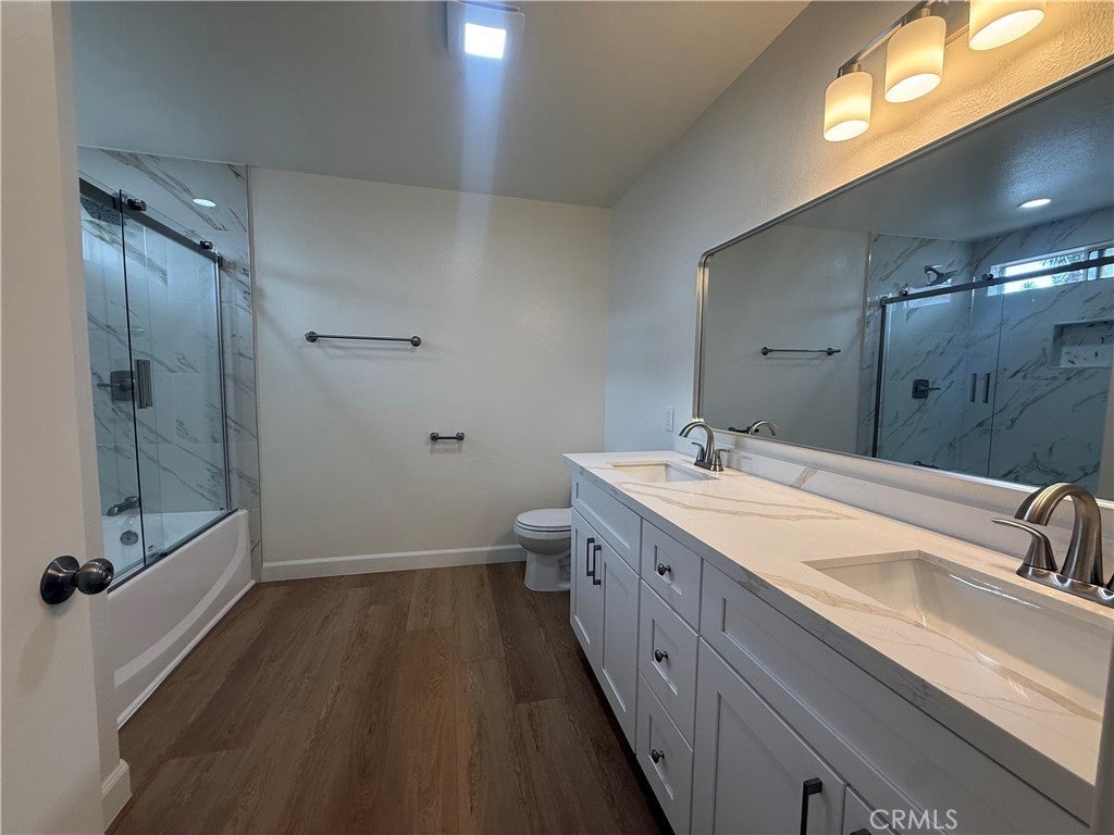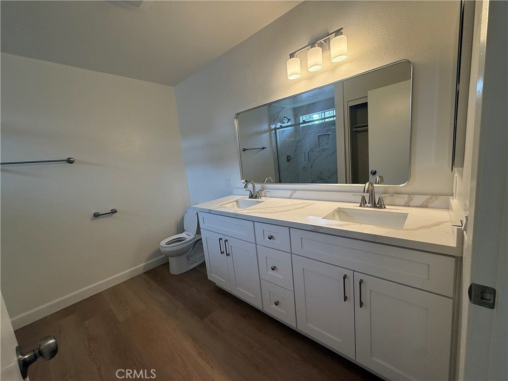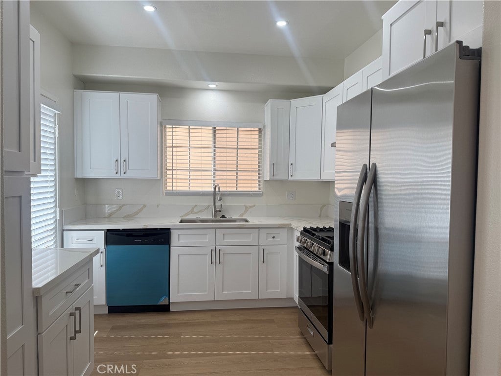 Superb, immaculate end-unit detached townhome offering 3 bedrooms and 2.5 bathrooms in a highly desirable gated community. Enjoy the privacy and comfort of a single-family–style residence, complete with a private backyard and an additional assigned parking space. This meticulously maintained, move-in-ready home has been thoughtfully upgraded with new wood flooring, fresh interior paint, and recessed lighting throughout, creating a bright and modern living environment. The newly renovated kitchen boasts elegant quartz countertops, brand-new cabinetry, and new stainless-steel appliances. All bathrooms have been beautifully remodeled with new vanities, toilets, and bathtubs. The spacious primary suite features a walk-in closet and a private en-suite bathroom. This unit offers a total of three parking spaces, including two garage spaces and one additional assigned parking space within the community.