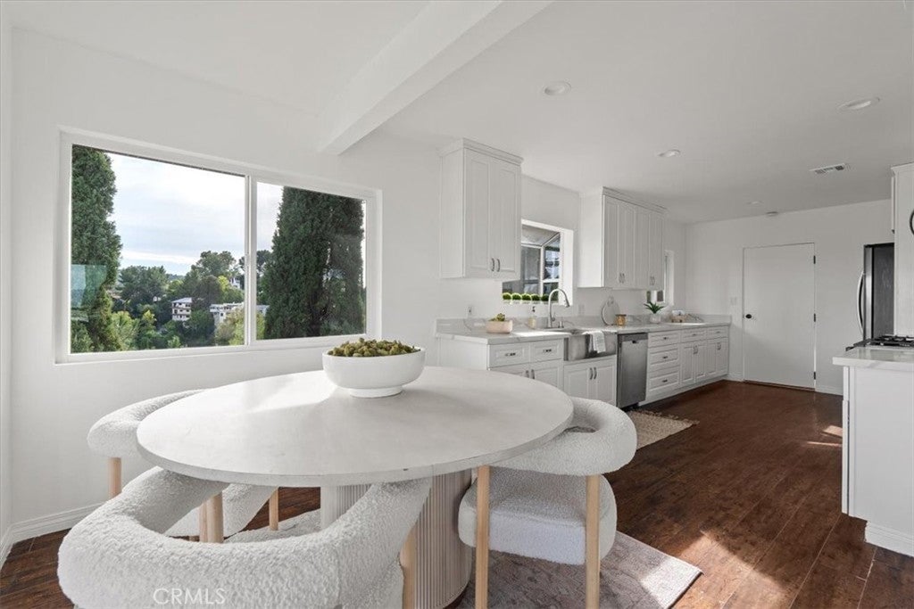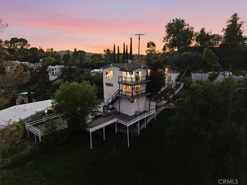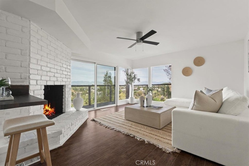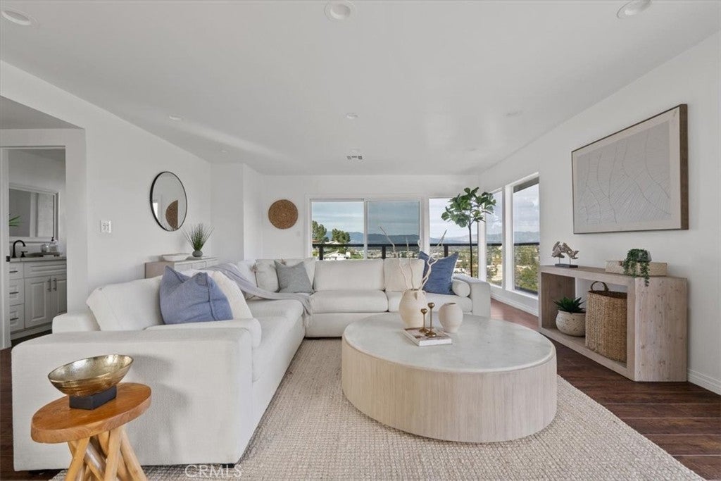 Breathtaking panoramic views!! Poised high in the coveted South of the Boulevard hills, this stunning Woodland Hills residence captures sweeping valley and mountain views from a private, expansive almost 17,000 sq. ft. lot. This light-filled home offers 3 bedrooms and 3 bathrooms with a thoughtfully designed layout ideal for both everyday living and entertaining. The open-concept main level is highlighted by dramatic floor-to-ceiling windows that frame the picturesque scenery and flood the living, dining, and kitchen spaces with natural light. Direct access to the attached two-car garage adds everyday convenience. The lower level features all bedrooms along with a versatile bonus living or game room complete with a cozy fireplace, perfect for relaxing or hosting guests. Also available is a separate lower-level suite with its own kitchenette and bathroom—ideal for guests, extended family, or a private home office. Step outside to the expansive outdoor deck and take in breathtaking panoramic views, offering a true sense of privacy, tranquility, and hillside living at its finest. Located just minutes from Warner Center, major freeways, premier shopping, fine dining, and top-rated schools, this exceptional home seamlessly blends comfort, functionality, and contemporary appeal in one of Woodland Hills’ most desirable hillside neighborhoods.
