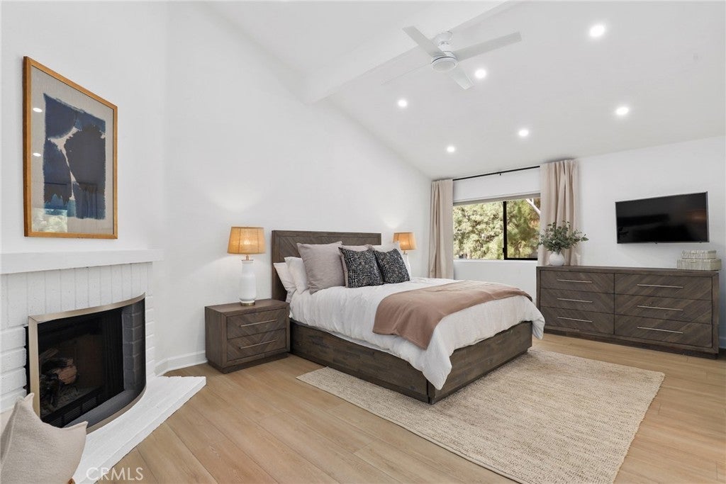 Beautifully remodeled two bedroom, two bathroom home located in the exclusive Warner Club Villas in the heart of Woodland Hills. This light filled residence offers an open, inviting layout with great flow and thoughtful updates throughout. The spacious living room opens to the kitchen and dining area and features sliding doors leading to a private, low maintenance patio with artificial grass and lush privacy landscaping, perfect for indoor outdoor living. A separate versatile family room provides flexible space for lounging, a home office, or potential third bedroom which is just opposite to the secondary bedroom and full bathroom on the same level. Just a few steps up is the beautiful private primary suite featuring vaulted ceilings, a cozy fireplace, and a spacious bathroom retreat. Additional highlights include newer light wide plank luxury vinyl flooring, fresh paint throughout, beautiful finishes from floor to ceiling, a private two-car attached garage with direct access and laundry area. The resort style community offers a pool, spa, tennis courts, and walking paths, and is conveniently located across from Warner Center Park, offering easy access to outdoor exercise, summer concerts in the park, and the annual Fourth of July celebration, all just minutes from The Village, Westfield Topanga, and some of Woodland Hills’ best dining, shopping, conveniences and entertainment.