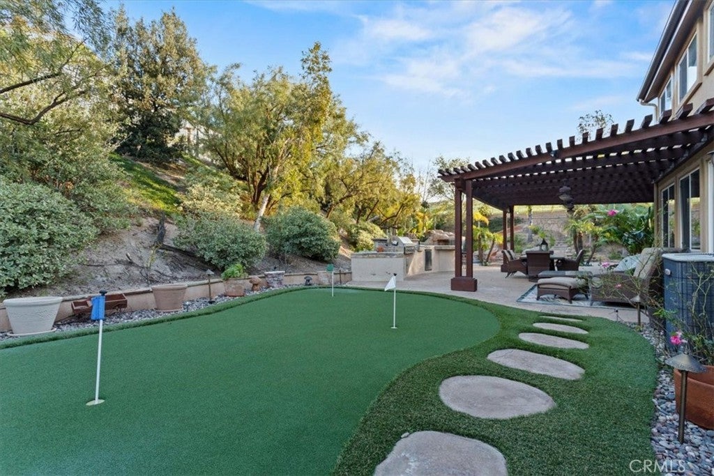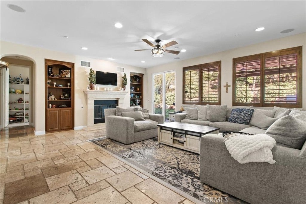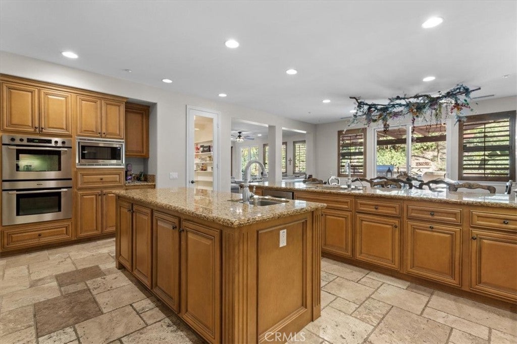 Welcome to Castlewood at Big Sky, one of the area’s most coveted communities—where wide-open spaces, dramatic mountain scenery, and serene natural beauty create a truly special place to call home. Backed by the stunning presence of Whiteface Mountain, this peaceful enclave offers the perfect blend of privacy, luxury, and Southern California indoor-outdoor living. Tucked away at the end of a quiet cul-de-sac and up a long private driveway, located next to open space, this exceptional property showcases breathtaking mountain and valley views, 5 spacious bedrooms, 4.5 baths, and an entertainer’s backyard that rivals a private resort. From the moment you arrive through the gated courtyard entry, you’ll appreciate the thoughtful layout—Inside, an expansive and light-filled floor plan unfolds. The formal living room, anchored by a cozy fireplace, opens to a charming courtyard with a tranquil fountain—setting the tone for relaxed elegance. A warm and inviting family room features its own fireplace, built-in entertainment center, and views of the sparkling pool beyond. Perfect for hosting, the elegant formal dining room flows seamlessly into the sun-drenched gourmet kitchen, complete with granite countertops, abundant cabinetry, a center island with sink, walk-in pantry, and a full suite of stainless steel appliances—truly a chef’s dream. The main level also includes a bedroom with a private bath, a laundry room, and a convenient powder room for guests. Up the grand staircase, the luxurious primary suite awaits—your personal retreat. This expansive haven includes a fireplace, sitting area, oversized walk-in closet with built-ins and pull down attic access with an abundance of storage area, and an additional ~250 sq ft bonus space ideal for an office, nursery, or fitness room. The spa-like primary bath completes the experience. Two additional ensuite bedrooms, a versatile loft, and a bonus room overlooking open space offer endless flexibility for today’s lifestyles. And then… the showstopper backyard. This is Southern California living at its finest: a resort-style pool and spa with rock waterfall grotto, swaying palm trees, BBQ island, lush lawn for play, and even a putting green—all beautifully set against a natural backdrop. Solar? Yes—owned with back-up batteries. There is also ample parking with a 2 car garage and a one-car garage with an attached room ideal for a hobby room or storage. Residents of Big Sky enjoy miles of walking and hiking trails.