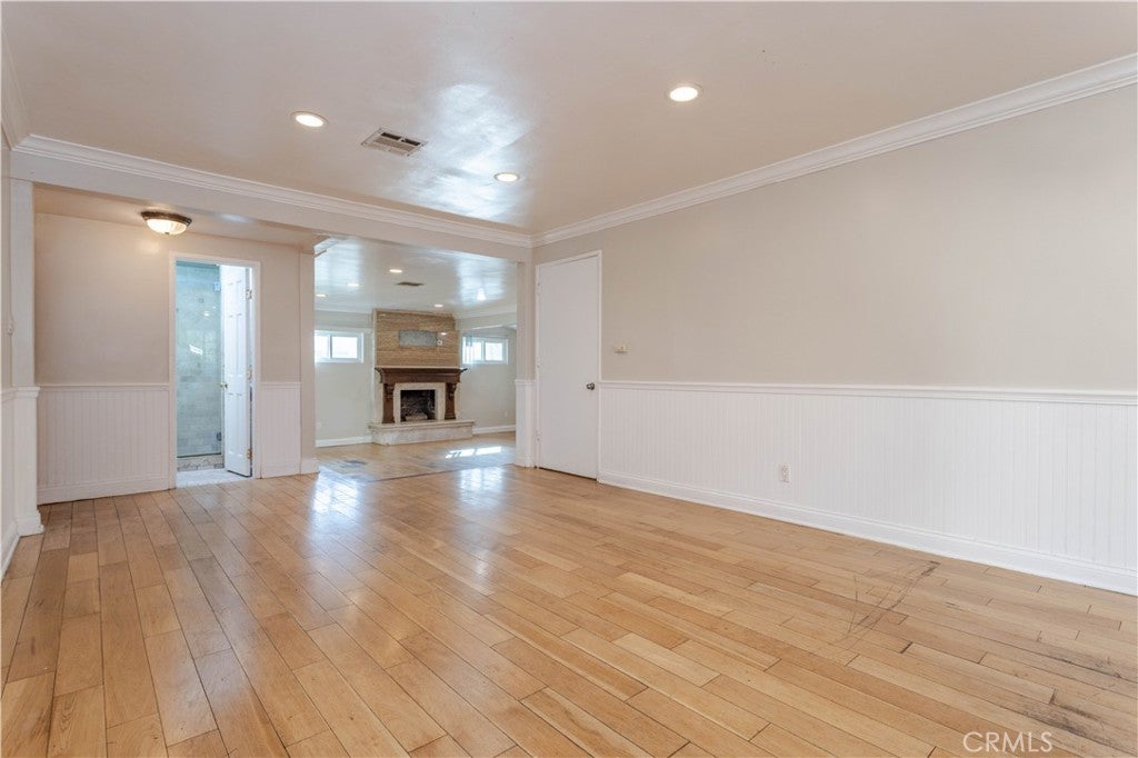 This centrally located Panorama City home offers 3 bedrooms and 2 bathrooms with approximately 1,638 square feet of living space. The property features a spacious family room with a fireplace, a separate dining area, a dedicated laundry room, and wood flooring throughout. The generously sized kitchen includes granite countertops and recessed lighting. Additional highlights include central air and heating. The home also offers an attached guest unit with a separate entrance. The front yard provides ample space to securely park multiple vehicles behind a block wall and wrought-iron gate, complemented by a covered carport and mature palm trees. The private backyard is low maintenance and features mature orange trees, a covered patio, and a convenient storage room.