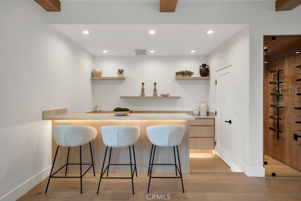 Beamed Ceilings, Cathedral Ceiling(s), Separate/Formal Dining Room, Eat-in Kitchen, Granite Counters, Recessed Lighting, Bar, Primary Suite, Walk-In Pantry, Walk-In Closet(s), Entrance Foyer, Smart Home, Wine Cellar