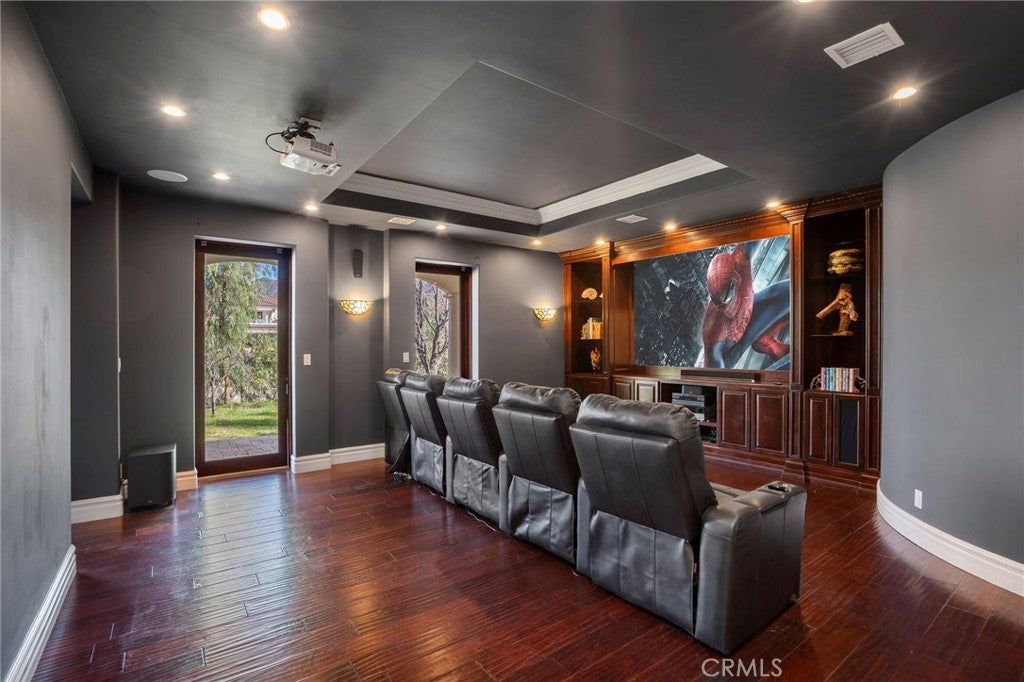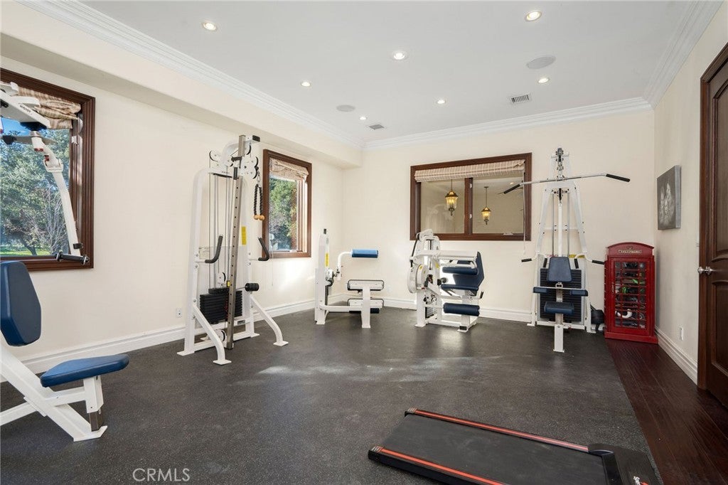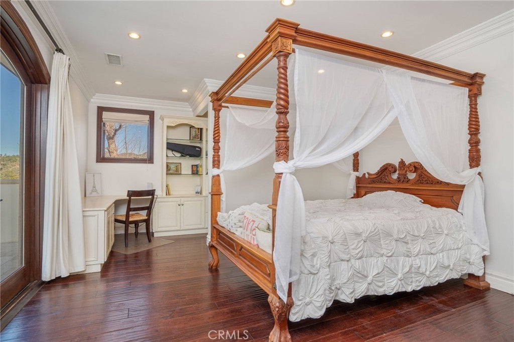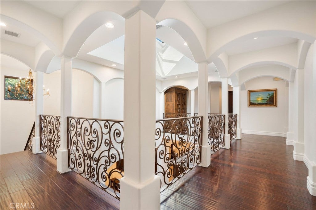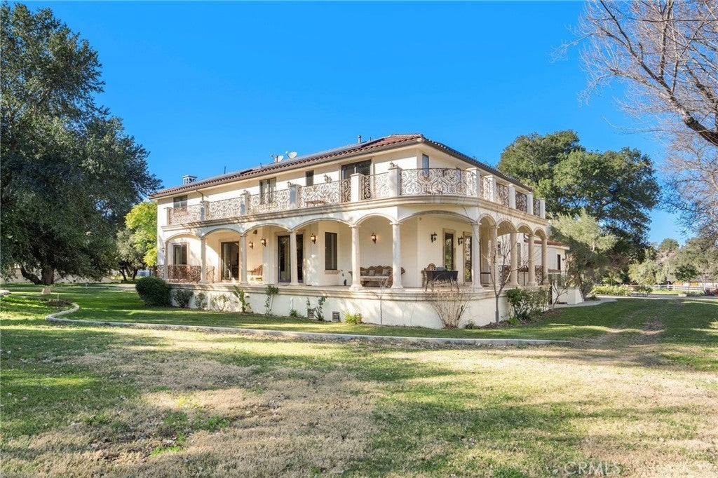 Behind a grand, gated entrance lies one of Sand Canyon’s most spectacular hidden gems—an extraordinary Spanish Mediterranean estate set on 6.27 oak-studded acres across two legal parcels, each with its own private gated access. Offering the perfect blend of luxury, privacy, and versatility, this property is ideal as a private retreat, family compound, or event-ready estate. The 6,350 sq ft main residence features 5 bedrooms, all with en-suite bathrooms, and 7 bathrooms total, including one bedroom conveniently located on the main level. Designed for both entertaining and everyday living, the home boasts soaring ceilings, expansive balconies, a private gym, theater room, and full bar. The primary suite occupies the entire west wing upstairs, complete with a spa-like bathroom and an oversized balcony overlooking the lake, while the junior primary suite mirrors this design on the east wing, offering its own private balcony and exceptional privacy. A 1,856 sq ft detached guest house provides outstanding separation and flexibility. The two-story structure includes a large open downstairs space—previously used as a recording studio—with a powder room, and an upstairs bedroom, full bathroom, and additional living area. At the heart of the property is a stunning private lake with waterfall and pier, surrounded by majestic oak trees, creating a setting that feels both serene and unforgettable. The grounds are further enhanced by a barn, riding arena, chicken coop, and aviary, making this a dream property for equestrian enthusiasts, hobby farmers, or those seeking a true estate lifestyle. Additional highlights include the largest Tesla solar system available, fully paid for, along with four Tesla Powerwall batteries, offering energy efficiency, backup power, and long-term savings. This is more than a home—it’s a lifestyle. A rare opportunity to own a private escape without ever leaving Santa Clarita.