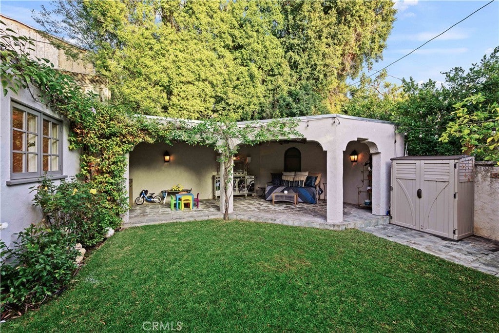 Storybook 1927 English cottage in coveted Westwood/Comstock Hills, just two blocks from Westfield Century City Mall, yet set perched on a quiet, leafy street near UCLA and Beverly Hills. Set on a ~7,168 sq ft lot, the ~1,952 sq ft main home offers 3 bedrooms and 2.5 baths, plus an approx. 400 sq ft detached studio garage conversion—ideal for a home office, gym, or creative retreat. Classic character throughout including Batchelder fireplace, hardwood floors, arched windows, leaded-glass built-ins, and coved/domed ceiling details, paired with modern updates. Remodeled kitchen with Wolf range, Sub-Zero appliances, Miele dishwasher, Ann Sacks tile, granite countertops, filtered water, custom cabinetry, and wine refrigerator. Charming breakfast nook, large dining room. Primary suite opens to the garden with French doors and features steam shower + soaking tub. Newer HVAC, ample storage, and small basement/wine storage area. Lush gardens, charming portico, citrus trees, herb gardens, gated driveway parking + resident-only street parking. Fairburn Elementary. Offered furnished or unfurnished.