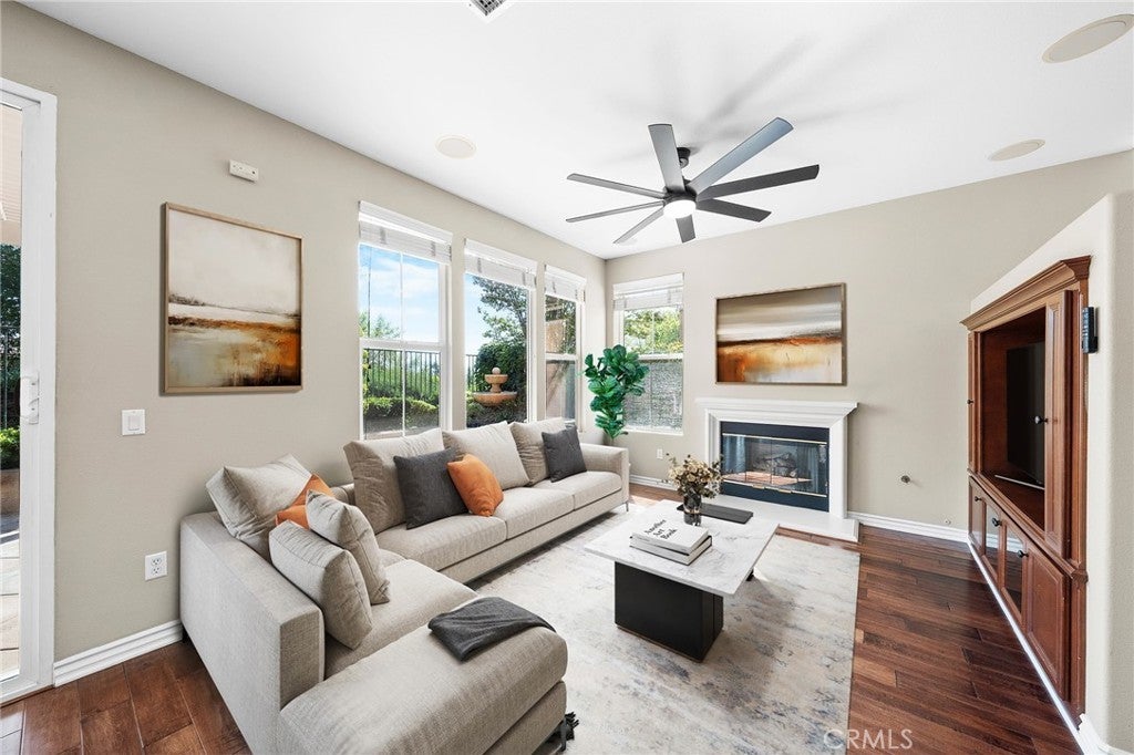 Panoramic City & Mountain Views | Gated Community!!! Welcome to Bella Ventana, an exclusive enclave within the prestigious Westridge TPC Private Golf Community in Valencia. This beautifully upgraded 1,960 sq. ft. 3 bed & 3 bath with a great view, luxury paired home offers an exceptional blend of elegant design, comfort, and resort-style living. Upon entry, you are greeted by an abundance of natural light and hardwood flooring throughout, complemented by new laminate flooring upstairs, new ceiling fans, a custom built-in entertainment center, and a warm, inviting fireplace—perfect for both everyday living and entertaining. The chef’s kitchen is thoughtfully designed with extensive cabinetry, granite countertops, stainless steel appliances, and a brand-new dishwasher, creating a functional yet sophisticated space. The adjacent backyard features a covered patio, ideal for outdoor dining, relaxation, or hosting guests. Upstairs, the primary suite serves as a private retreat, featuring custom closet organizers, a spa-inspired bathroom, and French doors opening to a private balcony showcasing breathtaking views of the Santa Clarita Valley, city lights, and surrounding mountains. Additional highlights include an attached garage with custom cabinetry and epoxy flooring, providing both style and practical storage solutions. Residents of Westridge enjoy an impressive array of amenities, including two Olympic-size swimming pools and spas, tennis and basketball courts, upcoming pickleball courts, a clubhouse for private events, and a community park with picnic areas, barbecues, and a playground. Families will appreciate the home’s walking-distance access to three top-rated schools, Highly desirable among families with children due to the excellent school district. Convenient proximity to the I-5 freeway. A unique advantage of the Bella Ventana community is that the HOA includes earthquake insurance, a rare and valuable benefit not commonly found elsewhere. This is more than a home—it’s a lifestyle opportunity in one of Santa Clarita’s most sought-after communities. Schedule your private showing today and experience the best of Westridge living.