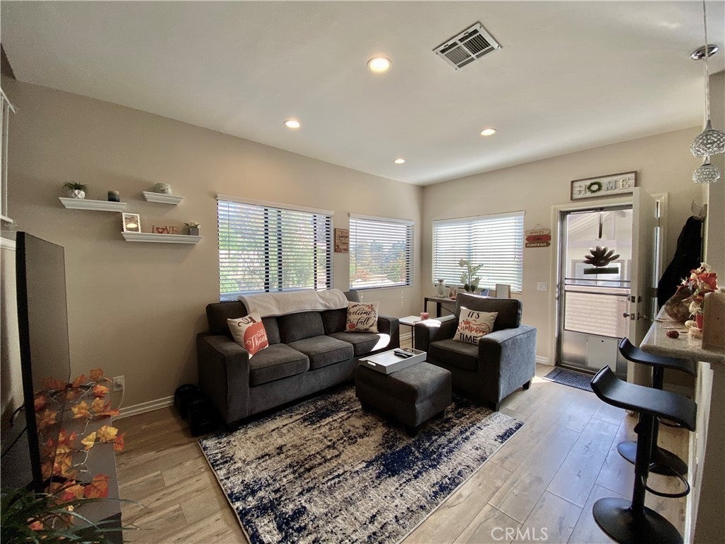 Stunning condo completely remodeled from top to bottom! 3 bedrooms, 2.5 bathrooms with an open floorplan. Great end unit with fantastic views & incredible, natural lighting. This property features upgrades galore: engineered wood flooring, neutral paint, gourmet kitchen with custom cabinetry, granite counter tops, stainless steel appliances, including brand new refrigerator, gorgeous tile backsplash, upgraded sink & breakfast bar. The list of upgrades is endless: custom lighting throughout, upgraded baseboards, some newer windows, smooth ceilings, raised panel doors, upgraded hardware, mirrored closet doors, brand new washer & dryer & much more! All three bathrooms have been beautifully remodeled with custom cabinetry, tile flooring, granite counters, upgraded lighting & custom tile surround in the bathtub and shower. Wonderful oversized deck, ideal for enjoying sunsets and summer BBQs! One large carport with an additional storage and one reserved parking spot. Wonderful community in the heart of Thousand Oaks, close to shopping, dining and easy freeway access.