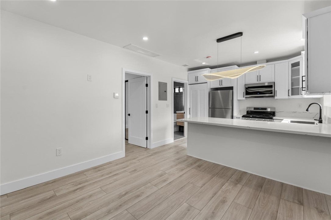 Beautifully remodeled 1-bedroom, 1-bathroom ADU that was recently renovated from top to bottom! The spacious living area flows seamlessly into a bright, well-designed kitchen with all-new appliances including fridge, stove, microwave, and washer/dryer. New dual-pane windows provide abundant natural light and a quiet interior. Home updates include recessed lighting, luxury cabinetry/hardware, and a new energy-efficient central heating and air system. In addition to the interior space there is also a 100 square foot private outdoor area. The entrance to the unit is private and gated. One driveway parking space included. This stunning property is conveniently located in an amazing central location with a short drive to freeway access and nearby CSUN, Pierce College, Northridge Fashion Center Mall, Portos Bakery, and many other great restaurants/shopping/entertainment. Make an appointment to see this one today as it will not last!