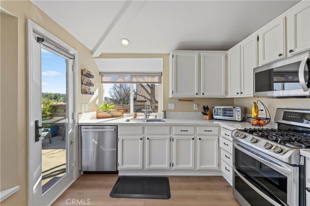Beautifully Updated Townhome in Secluded Greenbelt Setting Welcome to this beautifully upgraded townhome, tucked away in a peaceful and private location with scenic greenbelt views from both the kitchen and backyard. This home offers 3 spacious bedrooms and 2 full bathrooms and has been thoughtfully renovated from floor to ceiling. Enjoy top-of-the-line luxury vinyl plank flooring with natural oak wide-plank styling throughout, complemented by plantation shutters and solar shades in the kitchen that provide comfort while preserving the tranquil views. The remodeled kitchen features upgraded countertops and stainless steel appliances, perfect for everyday living and entertaining. All bathrooms have been tastefully updated, and each bedroom includes a ceiling fan for added comfort. Two bedrooms feature mirrored closet doors and custom closet organizers for optimal storage. Recessed lighting enhances the home’s bright, modern feel, and recently installed rain gutters add to the home’s thoughtful upgrades. The attached 2-car garage offers direct access and includes washer and dryer hookups for added convenience. Residents enjoy access to three community pools, two playgrounds, and walking paseos, all within close proximity to a beautiful park and award-winning schools. This move-in-ready home offers comfort, style, and an exceptional location—truly a must-see!