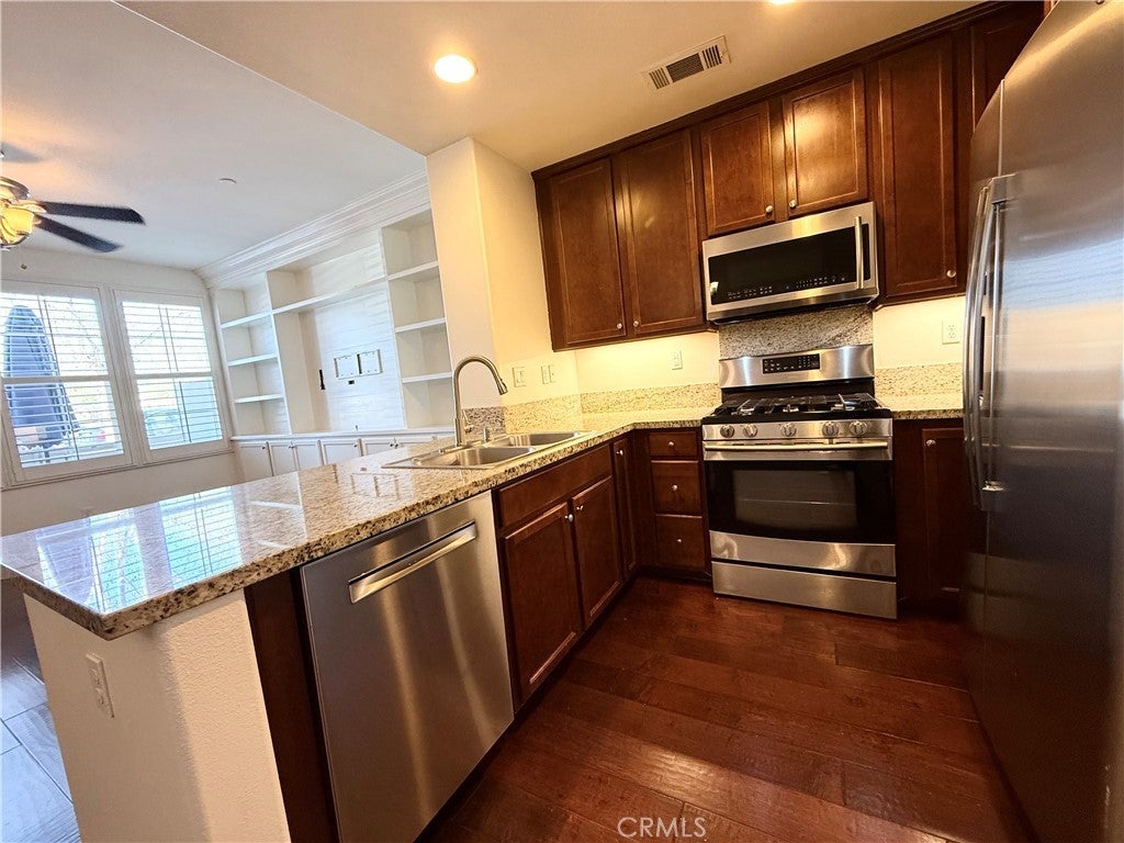 Ready to Move in! Washer, Dryer and Refrigerator are Included.*** Brand new Flooring ! This home is conveniently situated within walking distance of award winning schools, parks, recreation centers, & shopping/dining. Boasting 3 bedrooms, 2.5 bathrooms, and 1,580 Sq Ft, this beautifully UPGRADED townhome features a charming floor plan with GORGEOUS Custom BUILT-IN's large plank wood floors and Plantation Shutters. The kitchen has Stainless Steel Appliances, Granite Countertops, and wooden cabinetry and INCLUDES Refrigerator, Washer and Dryer. Upstairs you will find 3 bedrooms, including a Master Suite with a CUSTOM shower and Walk-in closet. Never worry about parking again with your PRIVATE attached 2-car garage with extra storage and plenty of guest parking! Enjoy the stunning California sunset from your very own fenced porch area!