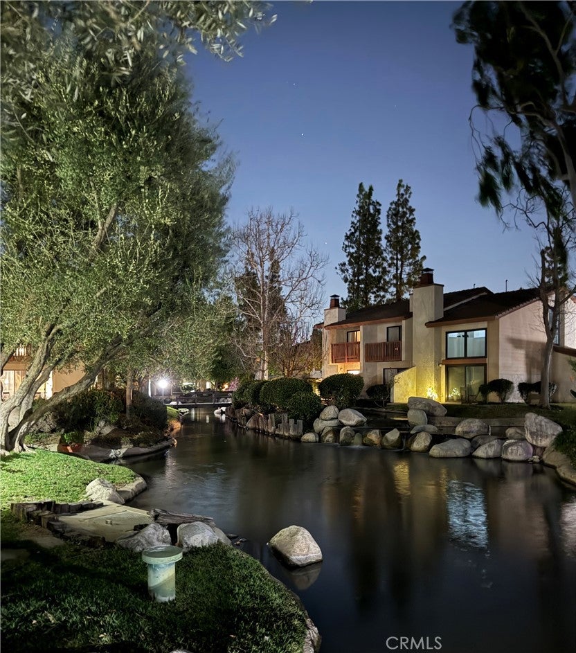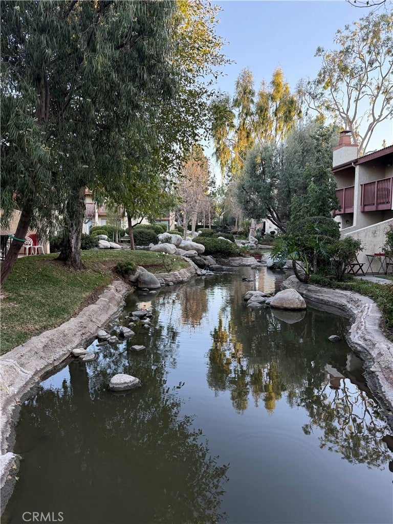 Welcome to this bright and charming two-story townhouse featuring 2 bedrooms and 1.5 bathrooms, filled with abundant natural light throughout. The first floor offers a beautiful living room with a cozy fireplace, seamlessly connected to the kitchen, creating an open and inviting space ideal for everyday living and entertaining. Step outside to a private patio overlooking a tranquil creek, where the soothing sound of flowing water provides a peaceful setting for relaxation, reading, or hosting guests. Upstairs, you’ll find two lovely bedrooms, including a spacious primary suite with high ceilings and a private balcony, offering a light-filled and serene retreat. The home is situated in a well-maintained community with resort-style amenities, including a pool, spa, tennis court, and outdoor seating areas. Enjoy a prime location just minutes from Warner Center Park, The Village, Topanga Mall, Costco, and a wide selection of popular restaurants and shops—combining comfort, convenience, and lifestyle.