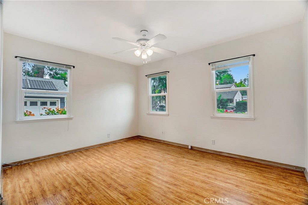 Prime South of Ventura Boulevard location on a picturesque, tree-lined Woodland Hills street, this inviting single-story home offers warmth and space. Ideally located just a few homes away from Woodland Hills Elementary Charter for Enriched Studies (buyer to verify enrollment). With 3 bedrooms plus a spacious bonus room across 1,671 sq ft, the thoughtful layout adapts beautifully to everyday living. Durable wood-style flooring and recessed lighting enhance the bright interior, while a relaxing brick fireplace anchors the welcoming living room. The cheerful kitchen features modern cabinetry, granite countertops, and a gas cooktop, flowing easily to the brick rear patio—perfect for morning coffee, weekend barbecues, or outdoor dining. One bedroom includes an en-suite bathroom with shower. Privately set at the rear of the home, a spacious bonus room features wood beam vaulted ceilings, its own fireplace, dual-sink vanity, jetted tub/shower combo, and a dedicated walk-in closet area—creating a true primary-style retreat, guest space, or private office. The flat grassy backyard provides space to play, garden, or simply unwind. A detached two-car garage and extended driveway offer ample tandem parking. Just moments from Ventura Boulevard’s shops and restaurants, The Village, Westfield Topanga, and convenient canyon and 101 access, this South of the Boulevard home blends comfort, location, and long-term potential.