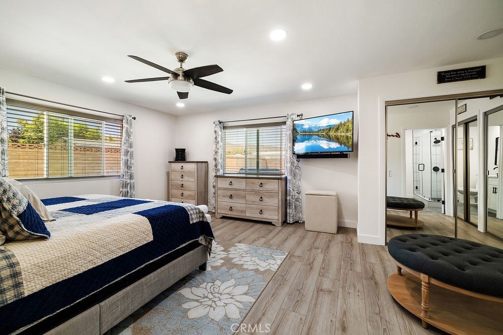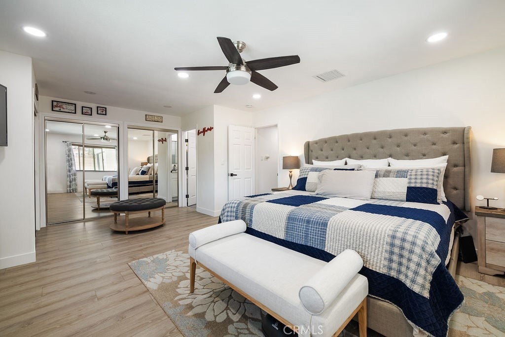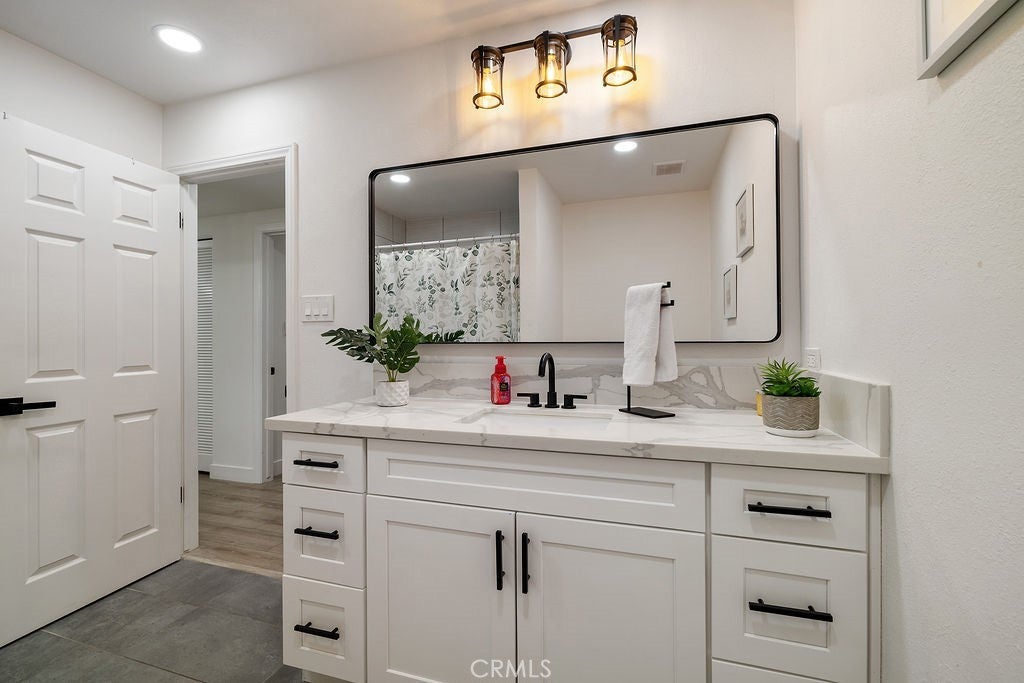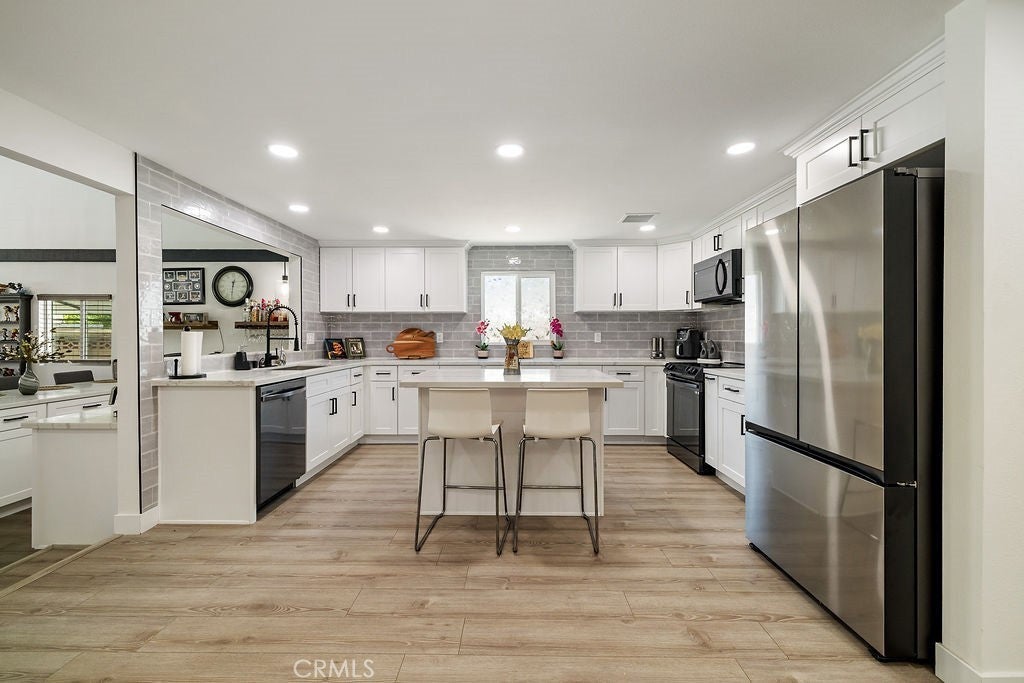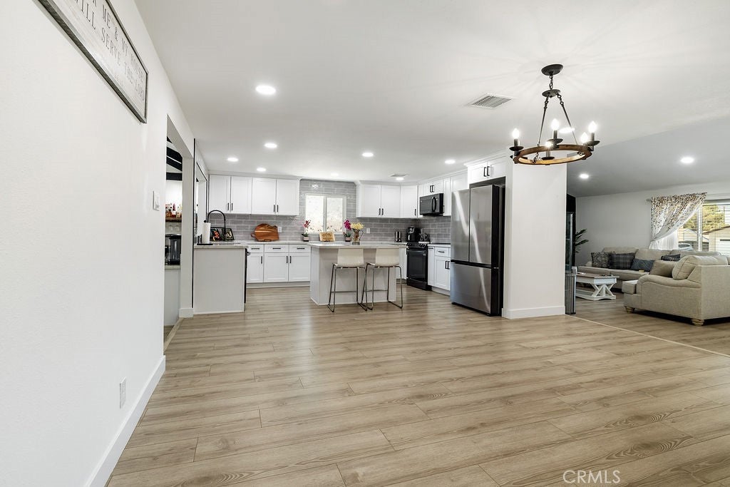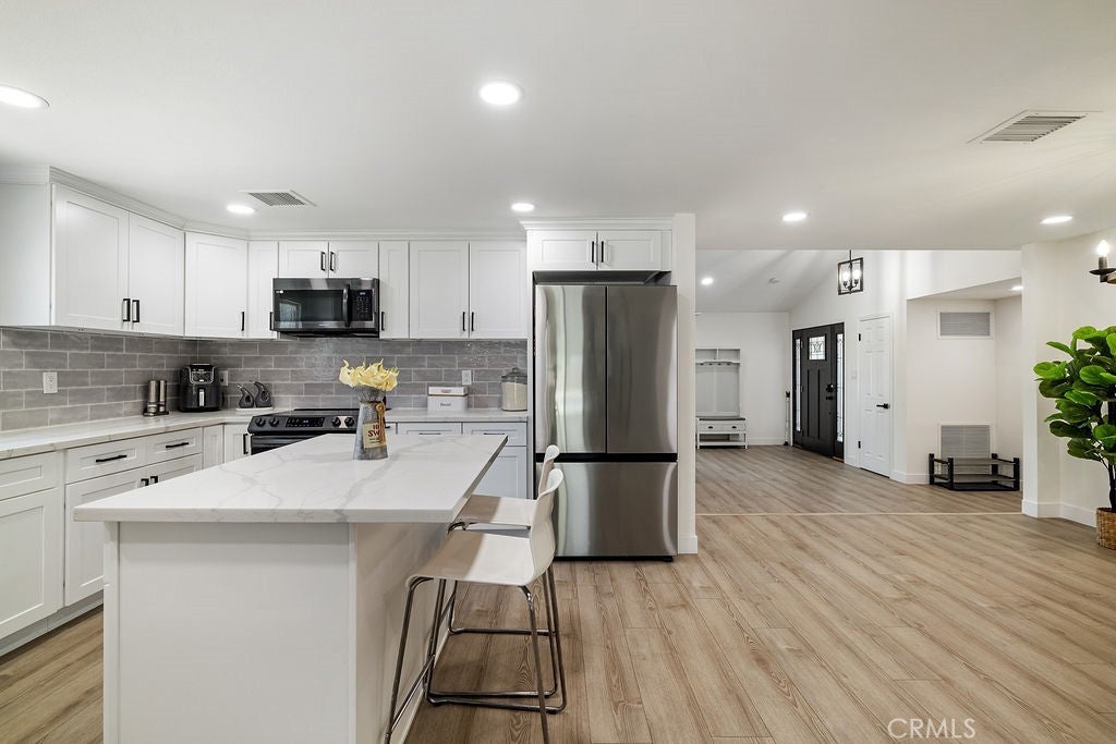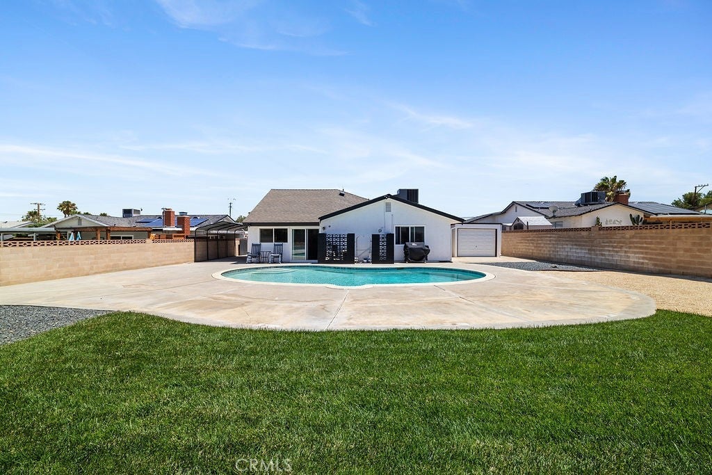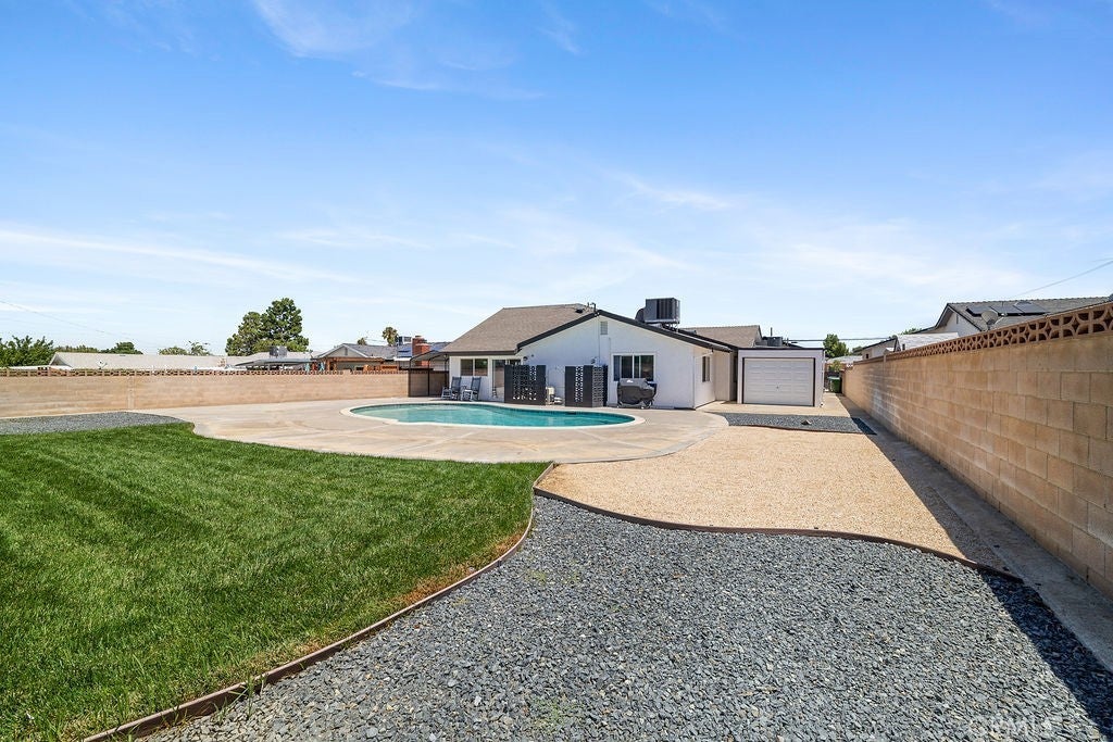 Brand New Roof! Gorgeous, newly remodeled 5 room, 2 bath, single story, pool house. Farmhouse inspired. Amazing 2,430 sq foot living space that welcomes you with an open-concept floor plan. You can see your backyard pool upon entering the front door. The entire house flows effortlessly. Formal living room with fireplace. Modern kitchen featuring quartz counter tops, a chic tile backsplash, a center island and stainless-steel appliances. Microwave, dishwasher, refrigerator and stove are included with the sale! A second island is found in the wet bar that is connected to the second living room creating the perfect setting for entertaining! Sit down and enjoy a glass of wine or a cup of coffee watching the sunset or the sparkling pool. Everything in this sleek home is 2 yrs old, floors, fans, chandeliers, doors, windows, blinds, garage door, pool equipment and heater, you name it! Independent laundry room equipped with cabinets and a utility sink. Electric washer & dryer also included. A custom-built shower glass door was made for the master bedroom along with dual sink quartz counter tops. Property includes a back shed/storage room, RV access, private parking and exterior lighting throughout. Welcome to your new home!