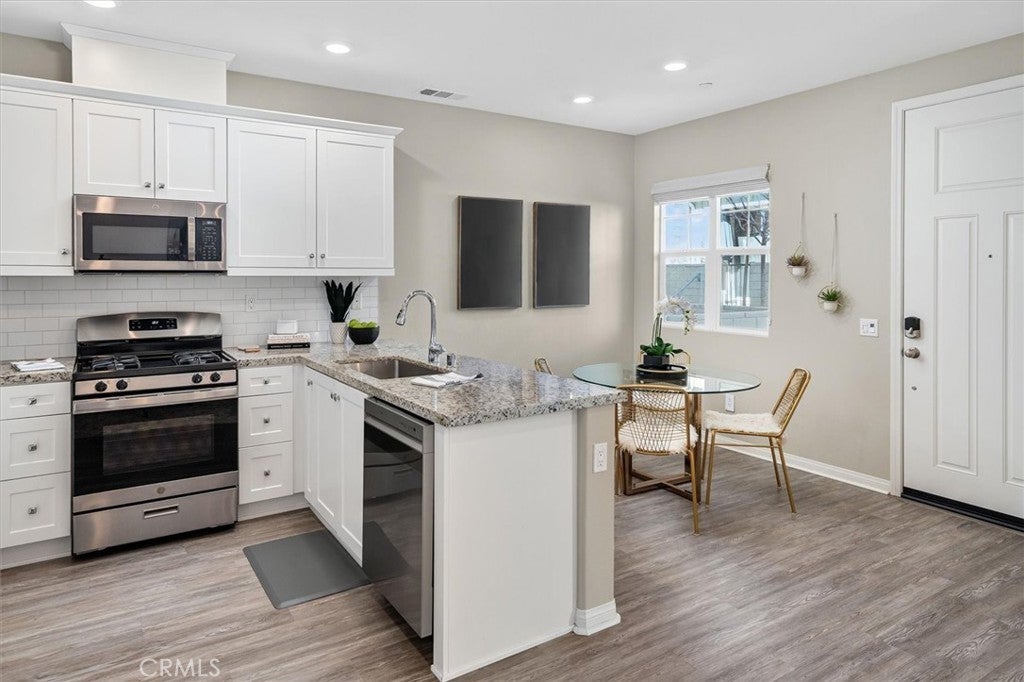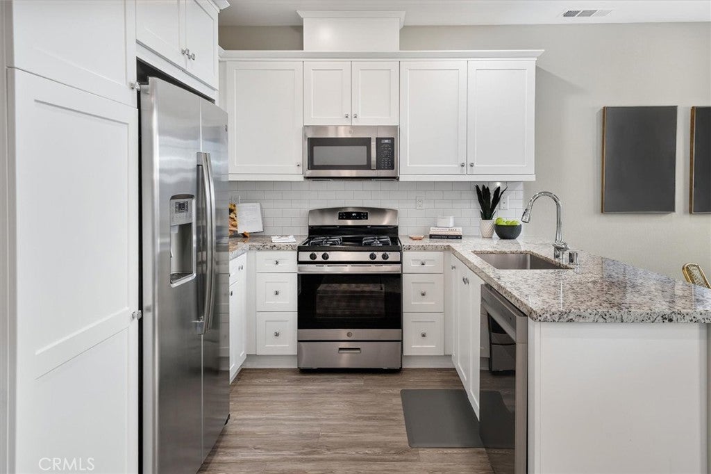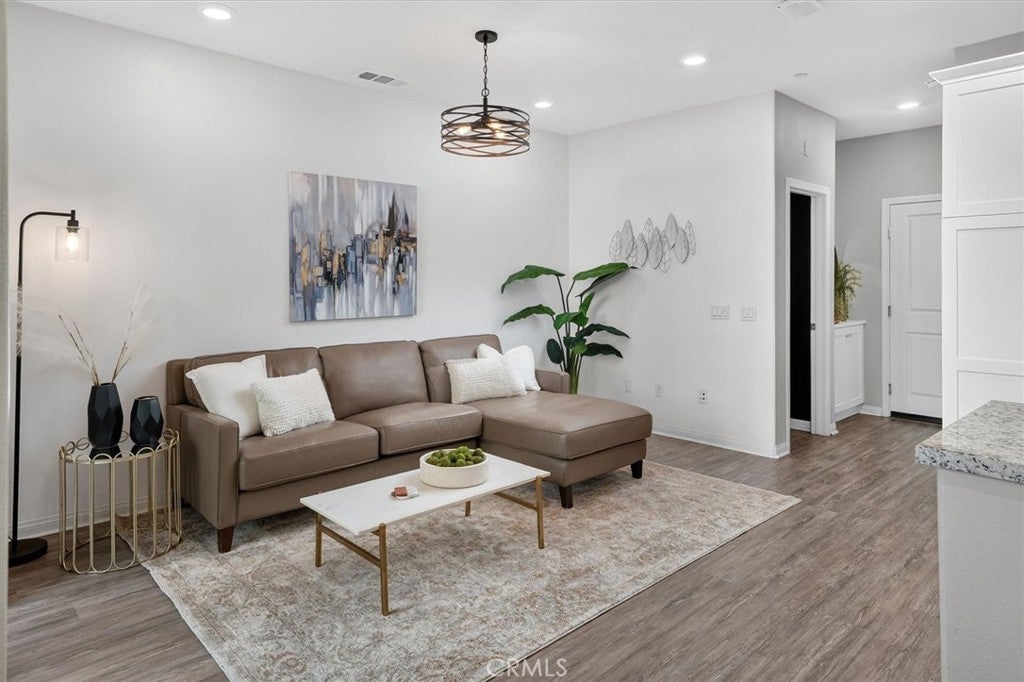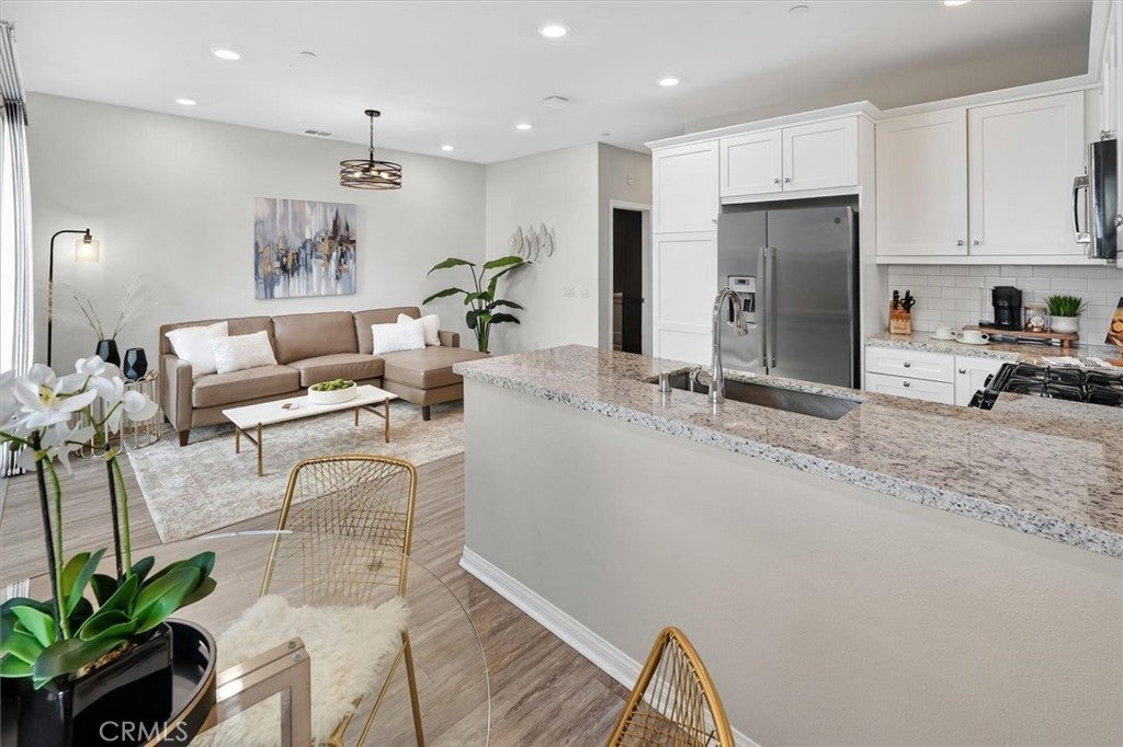 2-bedroom plus spacious loft townhome with 2.5 bathrooms, an attached 2-car garage, and a dedicated upstairs laundry room, located in the desirable Concord community. This WARRANTABLE and VA-approved complex offers low-maintenance living with access to resort-style amenities. Built in 2020, the home features solar and a tankless water heater. The first floor offers an open-concept layout with a spacious kitchen, dining area, living room, powder room, and direct garage access. The home features luxury vinyl plank flooring throughout and a custom kitchen backsplash. Upstairs includes the primary suite, secondary bedroom, two full bathrooms, a large loft ideal for a home office or flex space, and convenient upstairs laundry. Enjoy a private patio and close proximity to Santa Clarita walking trails, community pool, and amenities, along with nearby shopping and dining. Ideal for families, downsizers, or buyers seeking a newer, low-maintenance home in a prime location.