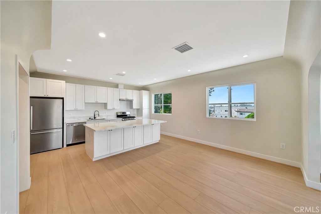 Welcome to this Top Floor, 2 bedroom - 1 bathroom unit with wonderful neighborhood views! This unit has been fully redone this year and receives some of the best natural light in the building! Highlights include modern renovations with new kitchen appliances, open floor-plan, recessed lighting, fresh paint, and an updated bathroom that ensures comfort. This unit also includes in-unit laundry which adds extra convenience. This top floor unit is perfect for anyone looking for modern and private living.