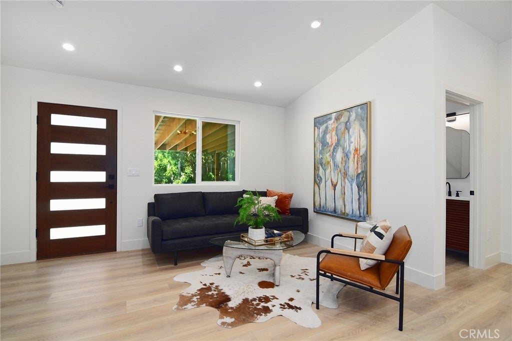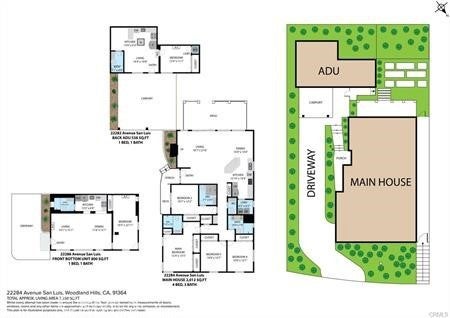 22284-Main House: 4 bd, 3.5 bth, 2012 Sqft. ADU: 22282: 1 bd, 1 bth, 538 Sq Ft. 22286-ADU: 1 bd, 1 bth, 800 sq ft. Welcome to this stunning 3 UNIT property located south of the Boulevard in one of Woodland Hills’ most desirable pockets. Just steps from vibrant shops, restaurants, and cafes, this unique property combines the charm of mid-century design with modern functionality—ideal for investors, multi-generational living, or owner-occupants seeking supplemental income.The main house is the star of the show, boasting dramatic floor-to-ceiling windows that flood the living space with natural light and create a seamless connection to the outdoors. With a strong nod to mid-century modern design, the home overlooks a flat, grassy backyard—a perfect setting for summer entertaining or quiet relaxation.Two additional fully remodeled units provide flexibility and income potential. The lower-level unit, located beneath the main home, offers a private entrance, sleek finishes, and a thoughtful layout. The third unit, a standalone rear dwelling, also features its own entrance and has been designed with comfort and privacy in mind. All three units have been extensively renovated in a clean, contemporary style that feels fresh, timeless, and move-in ready. Each unit enjoys its own laundry hookups and private address, offering true independence for occupants. A spacious driveway provides ample parking for all three units—an increasingly rare convenience in this area. Whether you’re looking for a stylish investment, a multi-family compound, or a primary residence with built-in rental income, this exceptional property delivers on every level.
